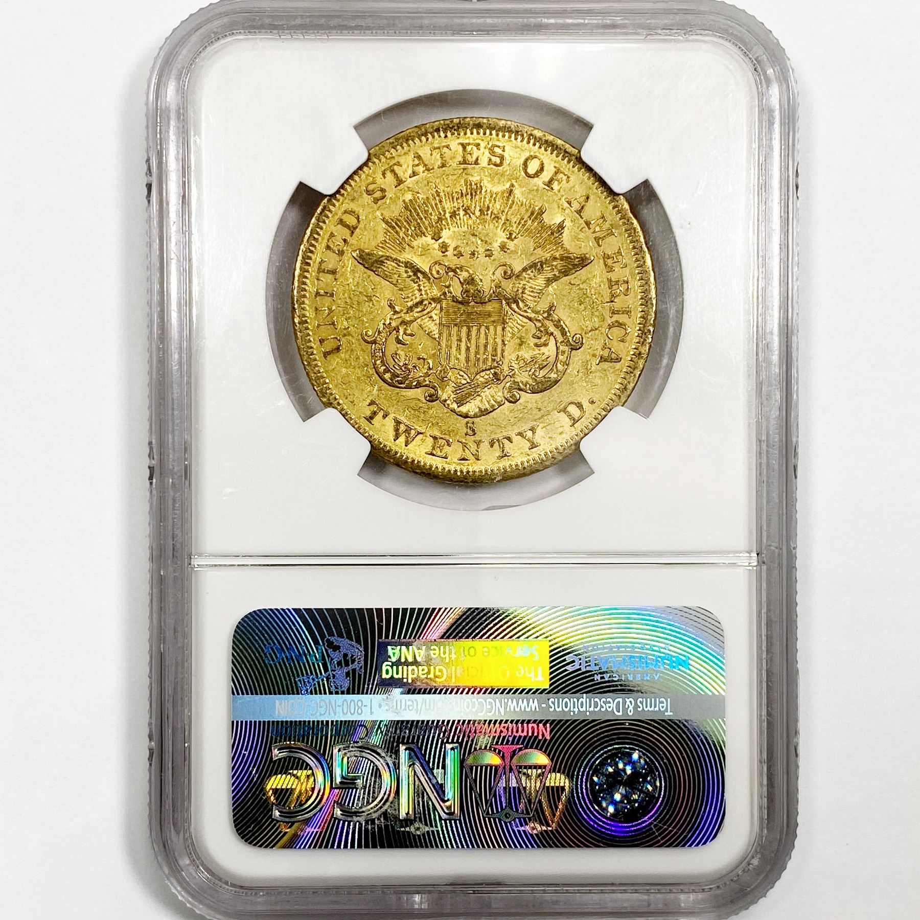 1858-S $20 Gold Double Eagle NGC AU53
