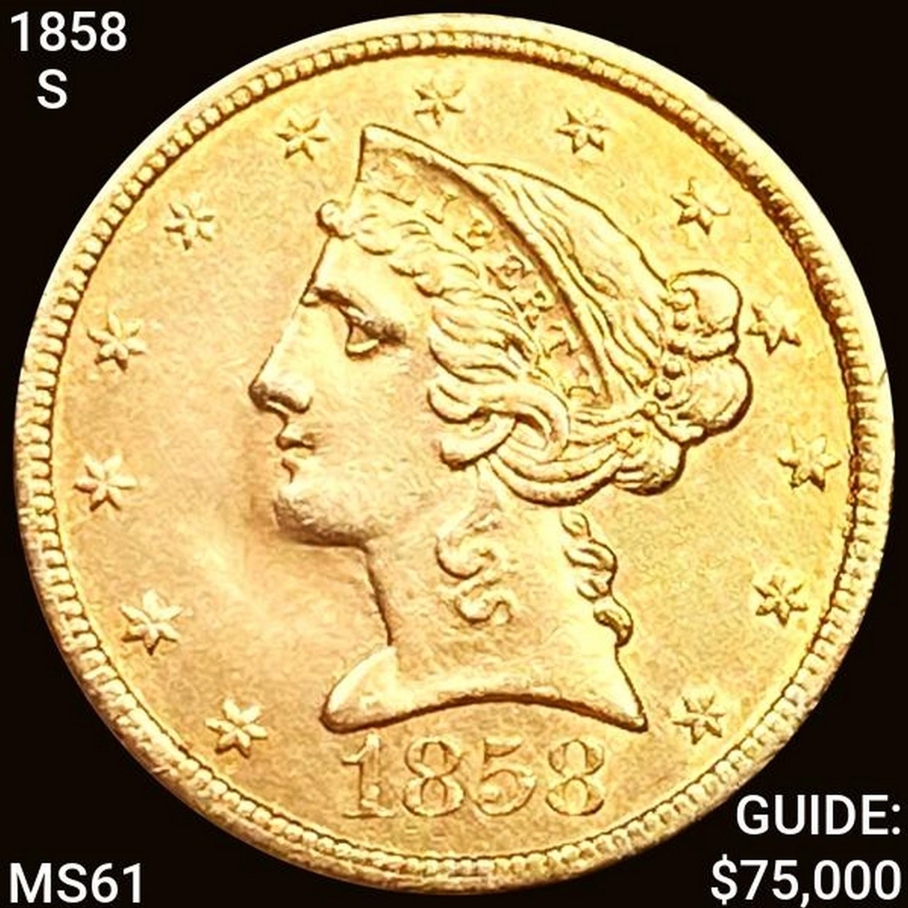 1858-S $5 Gold Half Eagle UNCIRCULATED