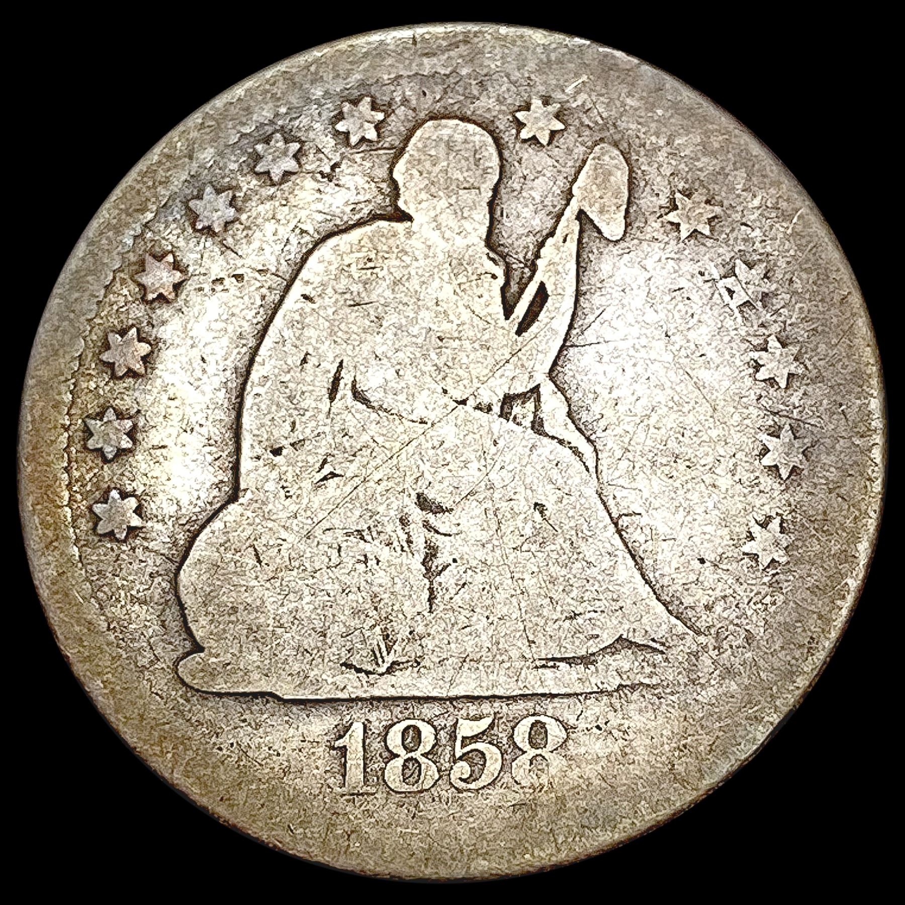 1858 S Seated Liberty Quarter NICELY CIRCULATED