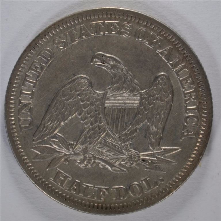 1858 SEATED HALF DOLLAR, AU
