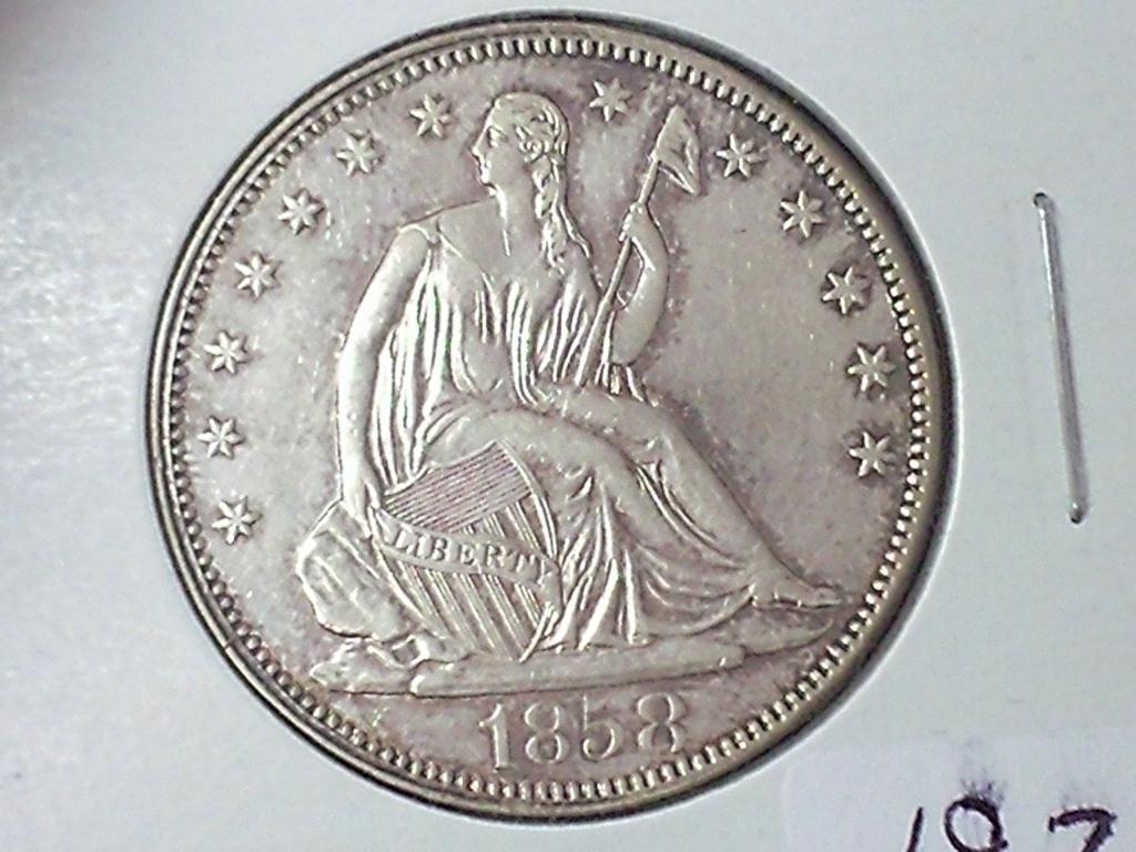 1858 SEATED LIBERTY HALF DOLLAR (AU)