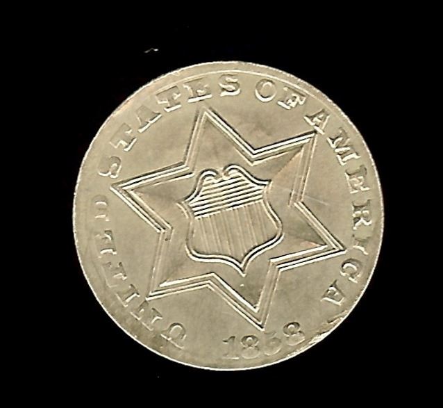 1858 SILVER THREE CENT PIECE NNC MS-64
