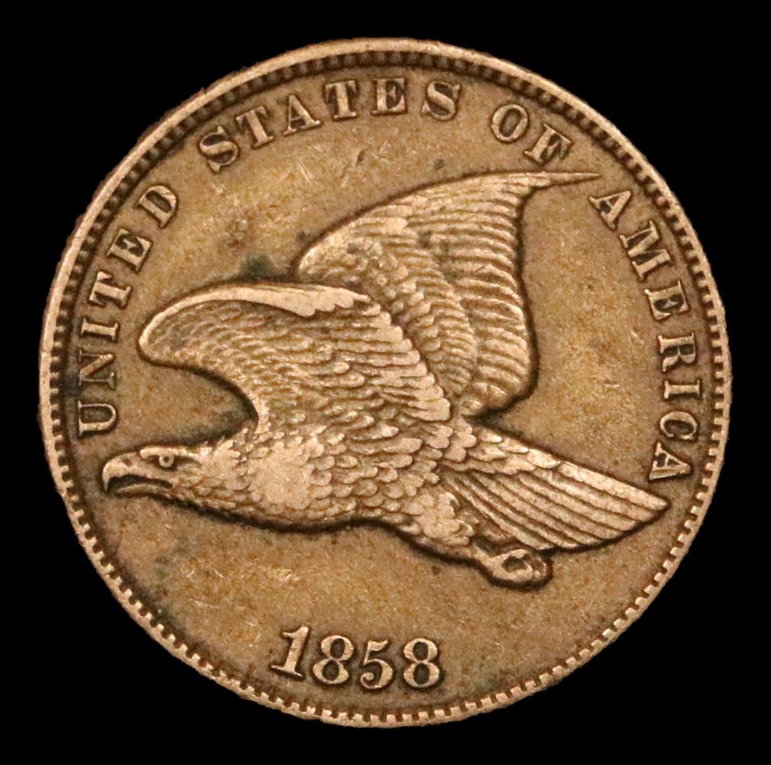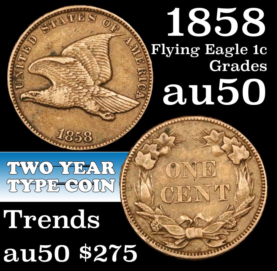 1858 SL Flying Eagle Cent 1c Grades AU, Almost Unc.