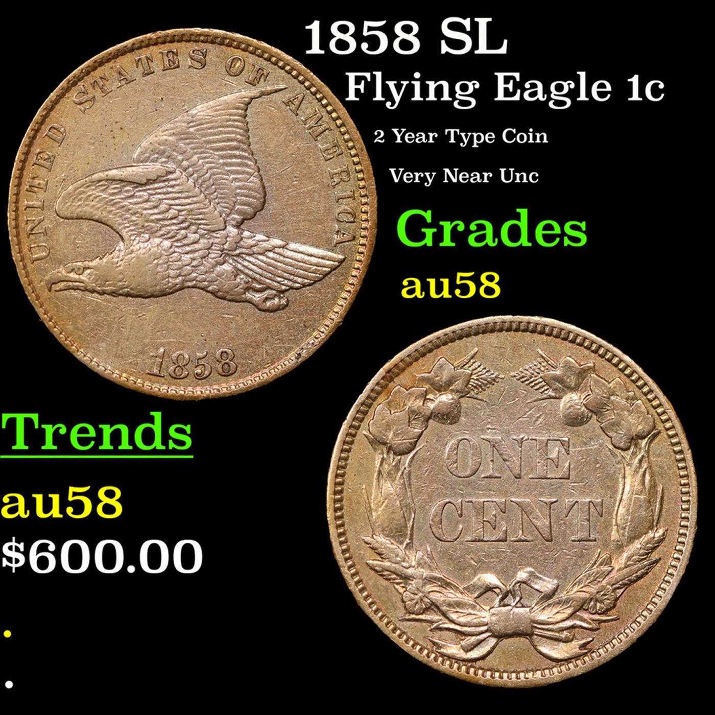 1858 SL Flying Eagle Cent 1c Grades Choice AU/BU Slider.