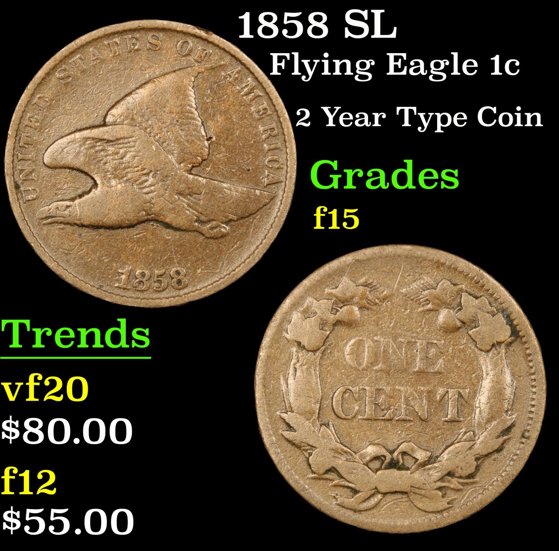 1858 SL 2 Year Type Coin . Flying Eagle Cent 1c Grades f+.