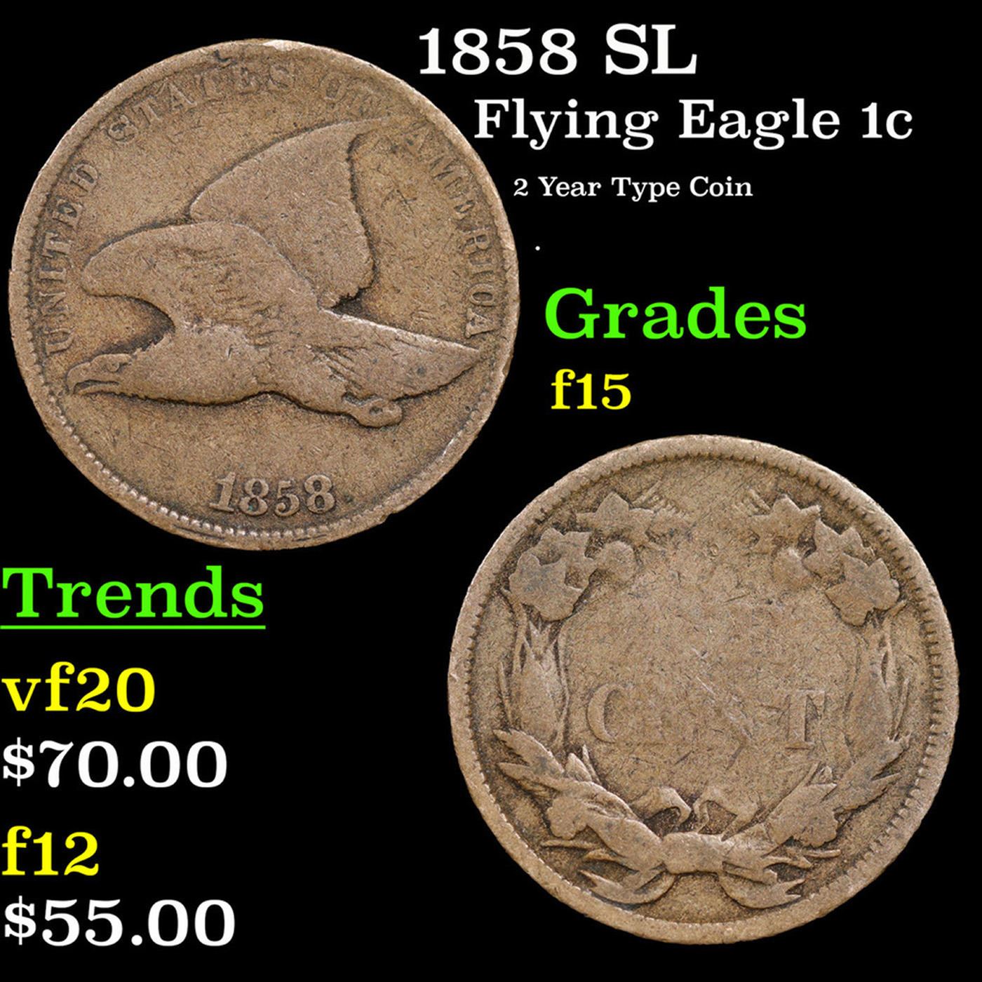 1858 SL Flying Eagle Cent 1c Grades f+.