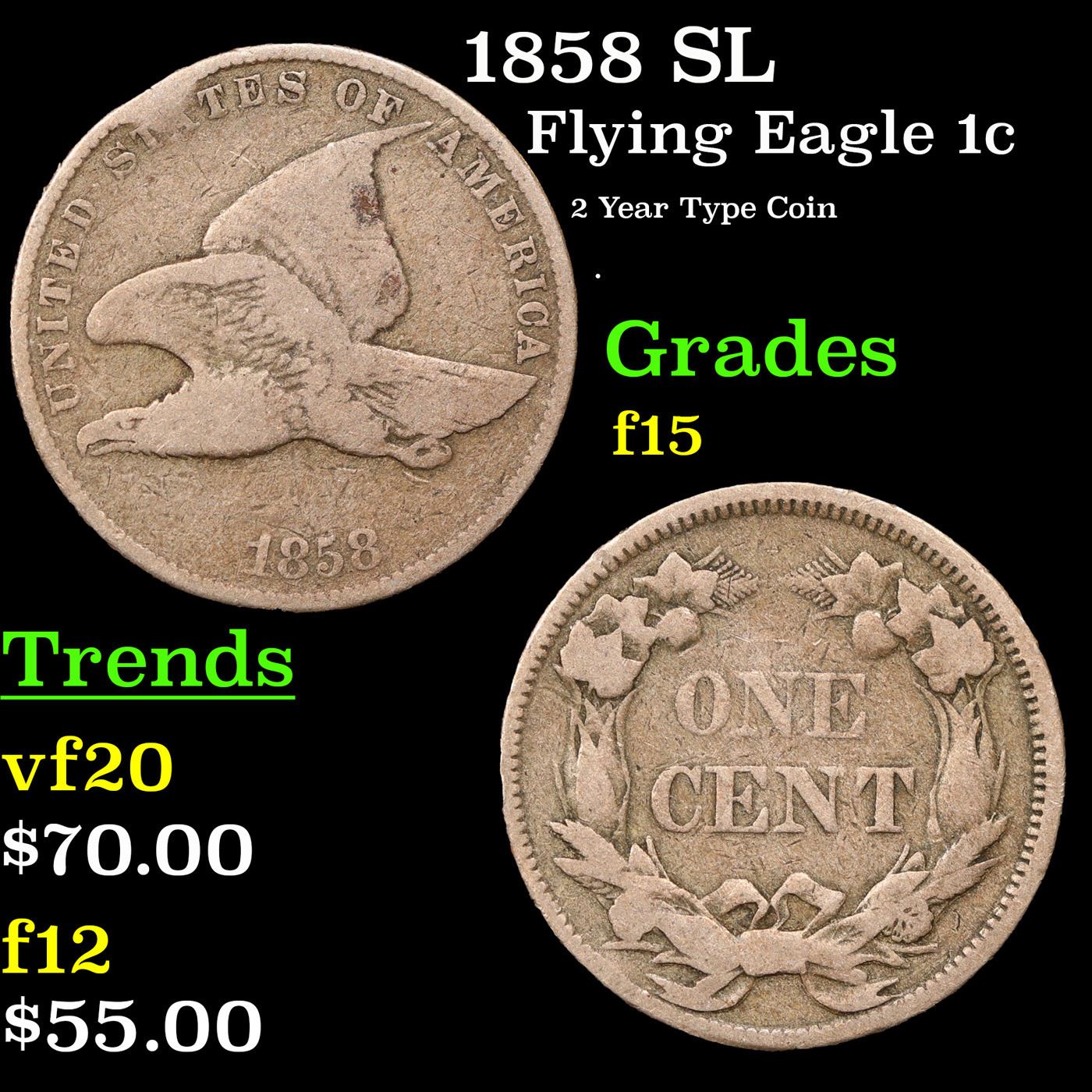 1858 SL Flying Eagle Cent 1c Grades f+.