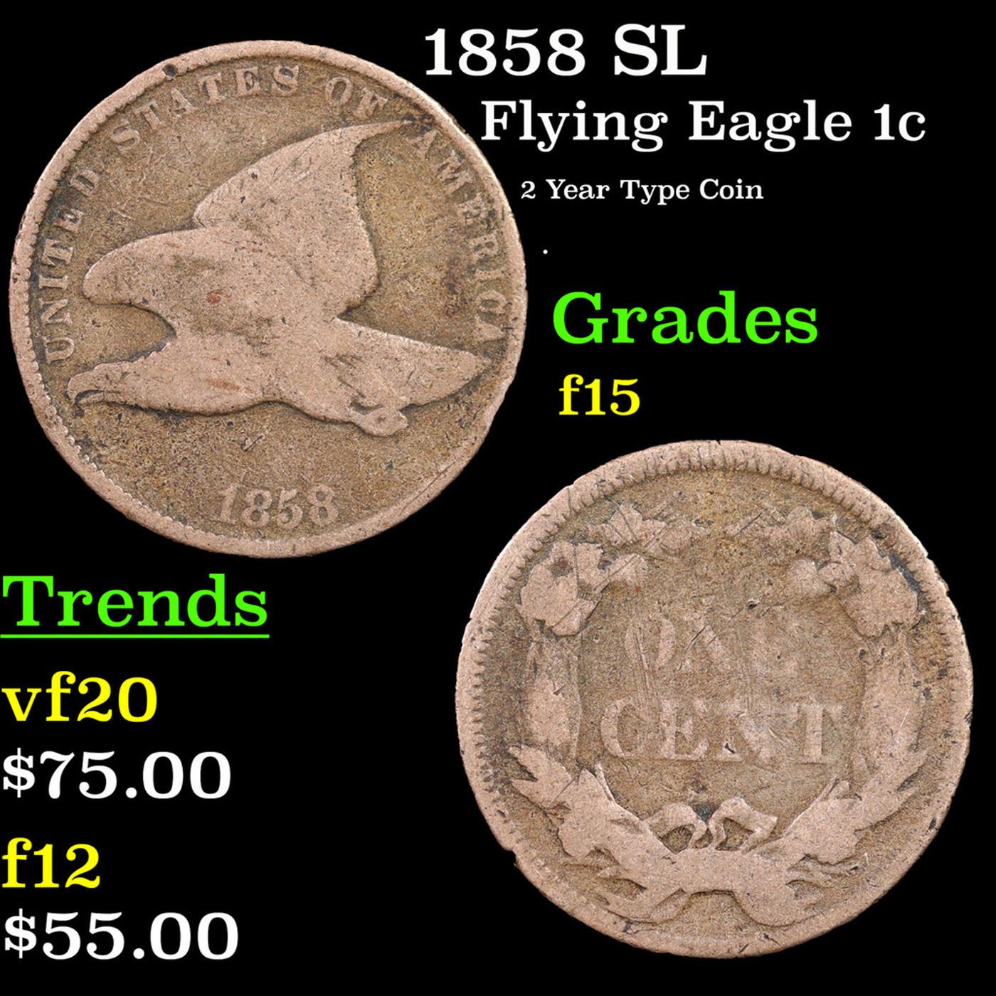 1858 SL Flying Eagle Cent 1c Grades f+.