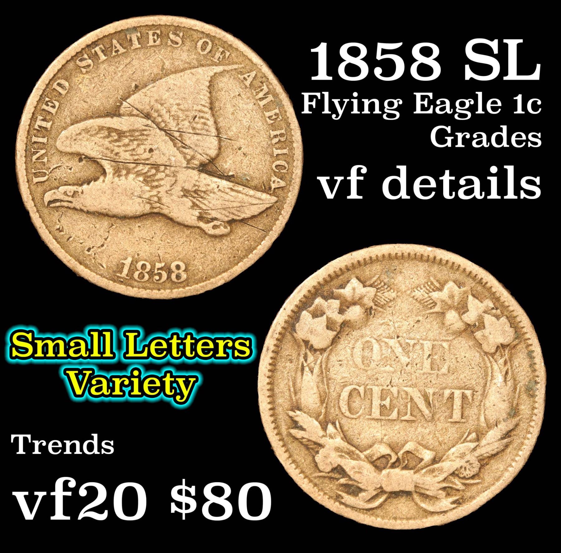 1858 SL Flying Eagle Cent 1c Grades vf details.