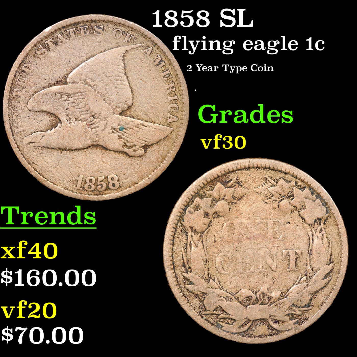 1858 SL Flying Eagle Cent 1c Grades vf++.