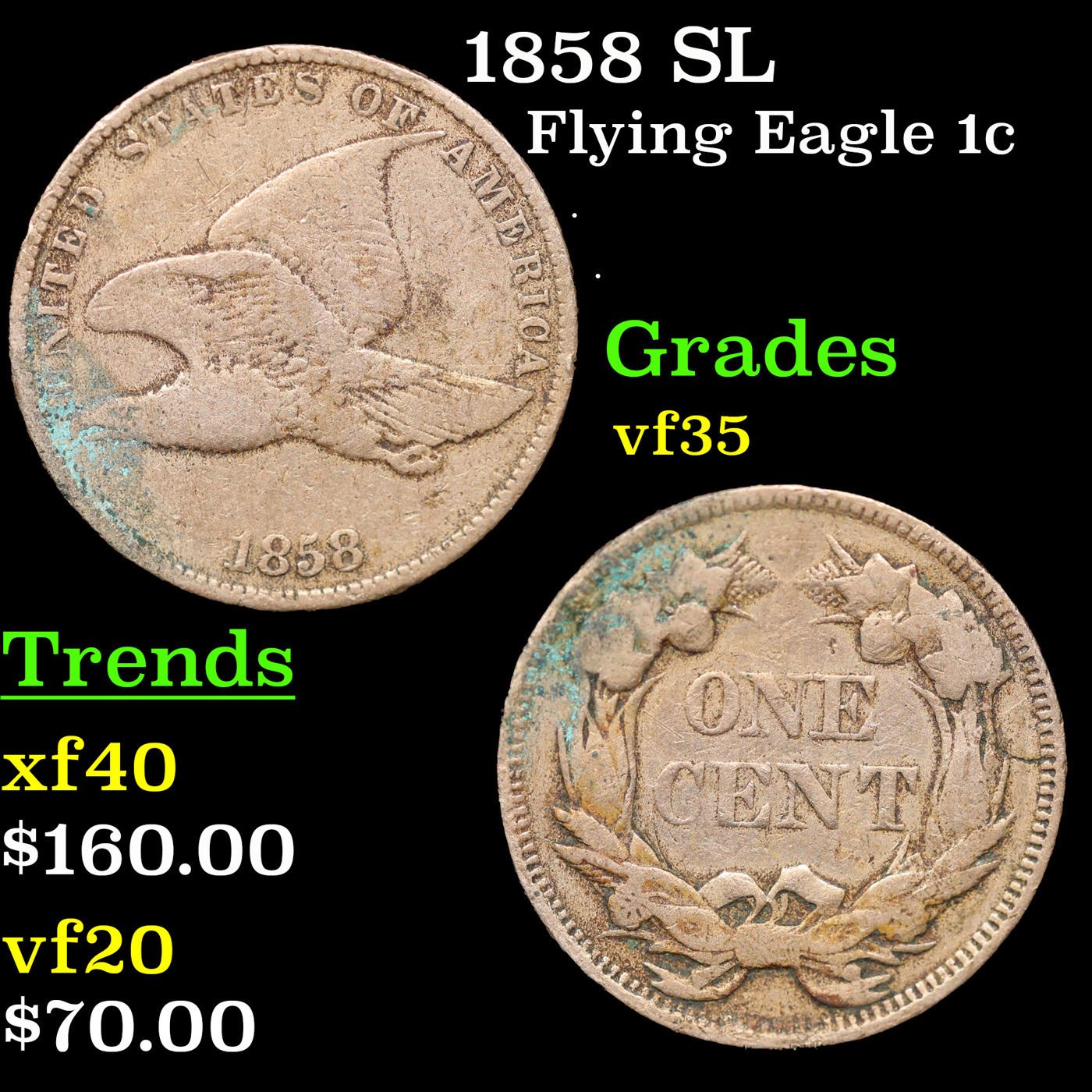 1858 SL Flying Eagle Cent 1c Grades vf++.
