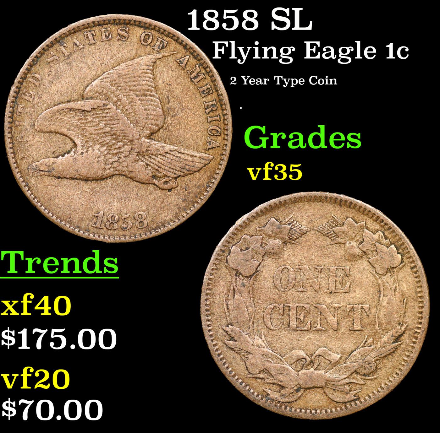 1858 SL Flying Eagle Cent 1c Grades vf++.
