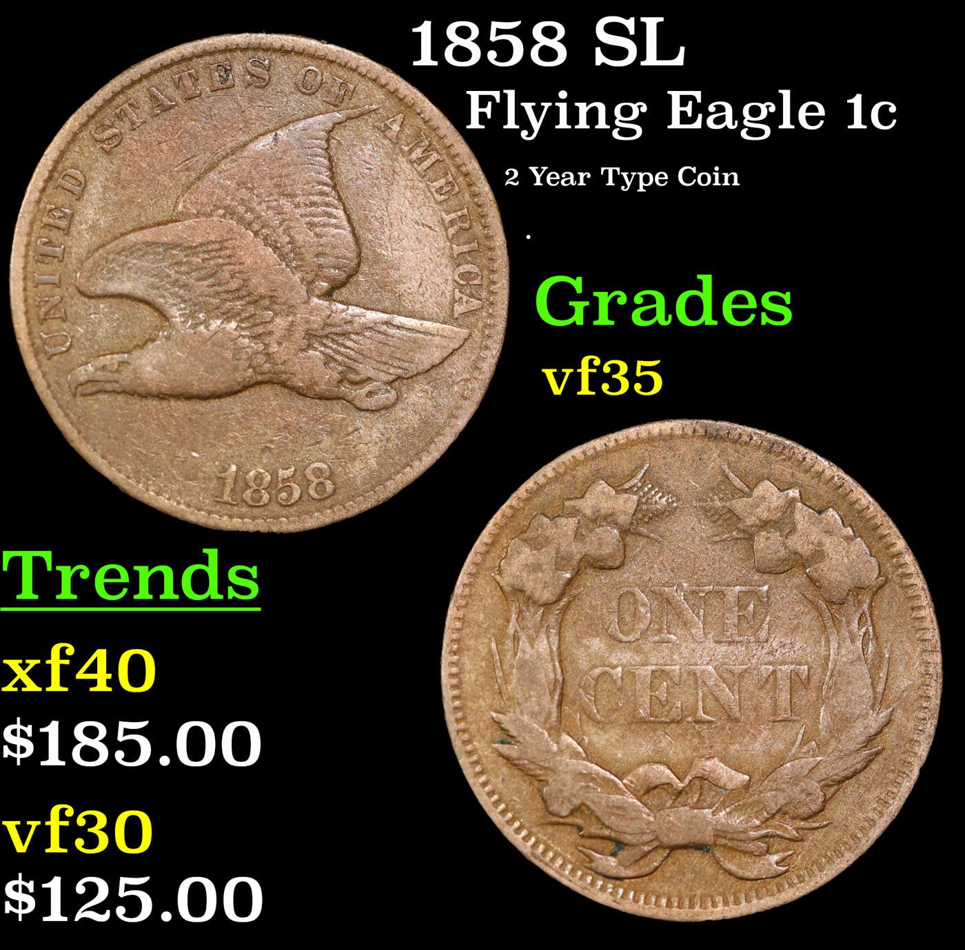 1858 SL Flying Eagle Cent 1c Grades vf++.
