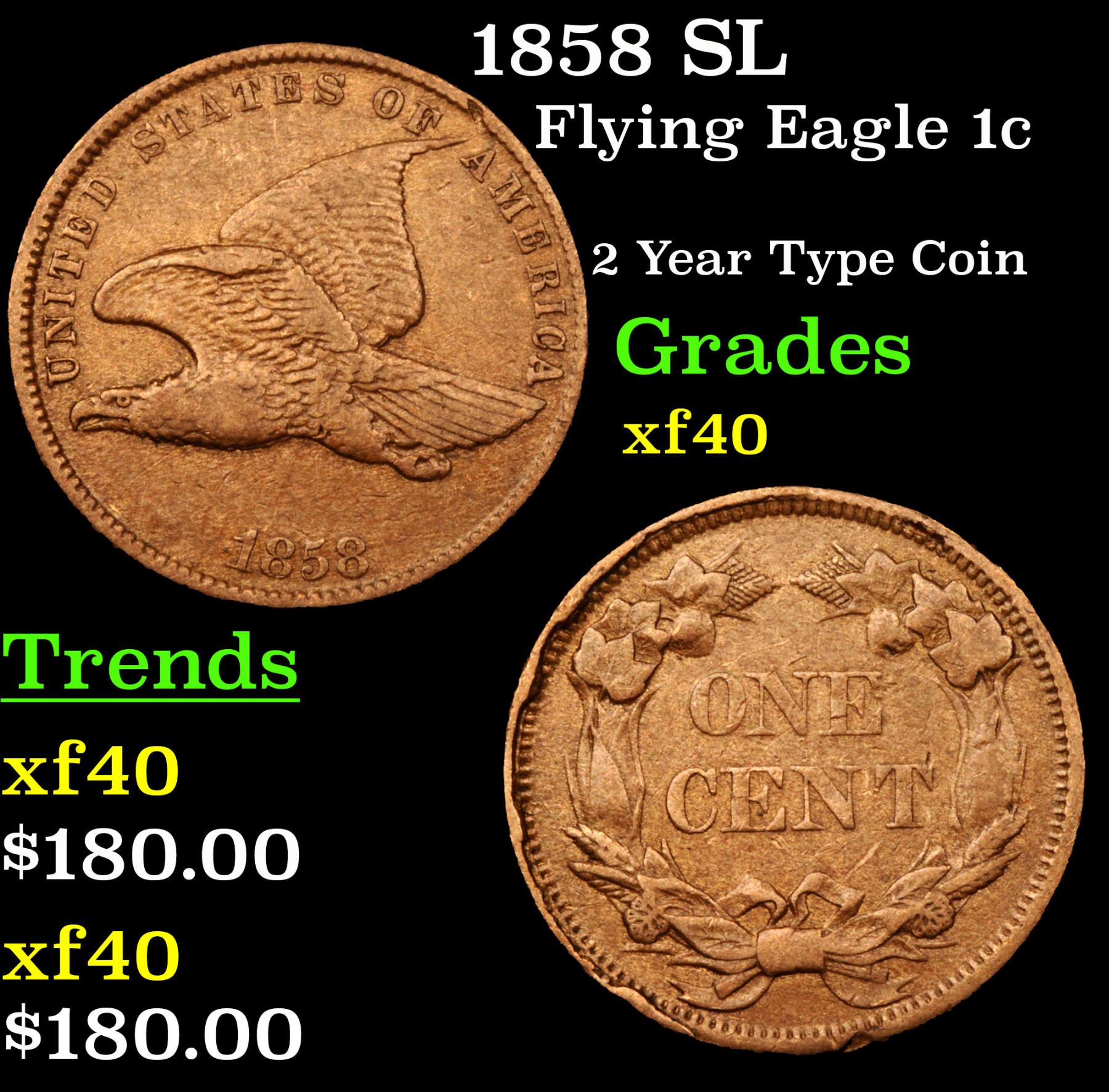 1858 SL Flying Eagle Cent 1c Grades xf.
