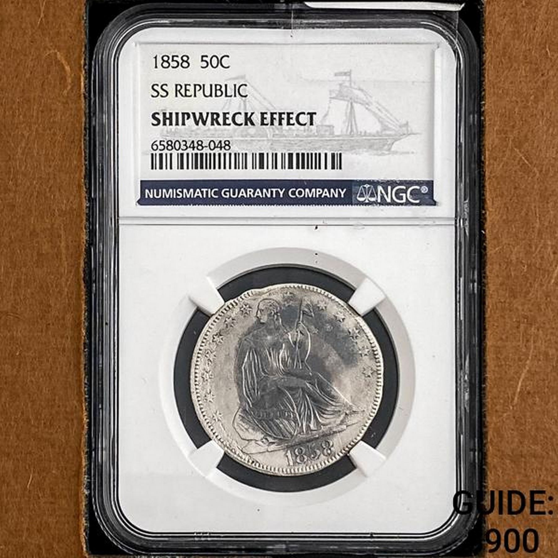 1858 Seat Lib. 50C Shipwreck SS Republic w/ Box NGC