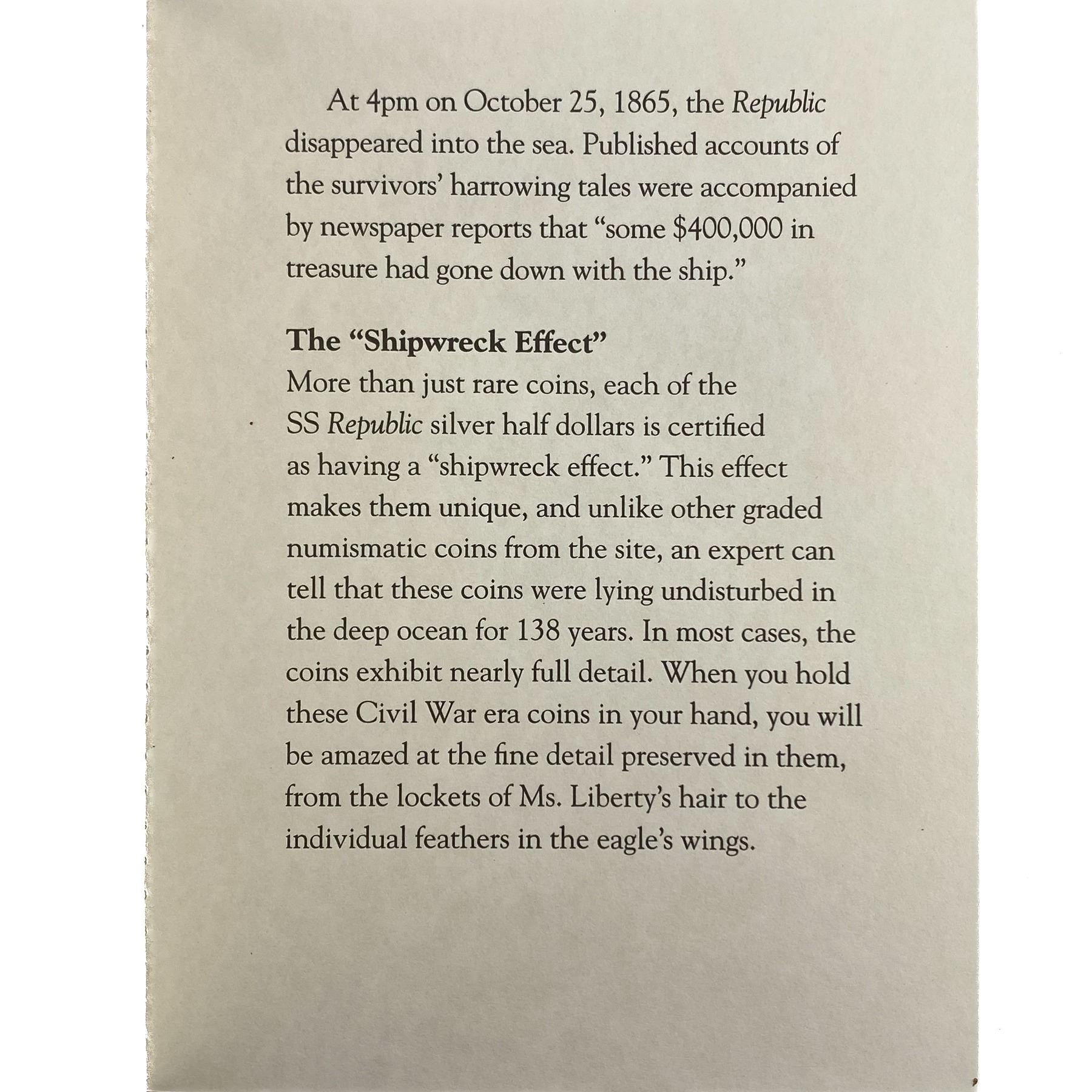 h. Since GSA cannot examine encapsulated coins or notes, they are sold “AS IS” without GSA’s grading opinion, and may not be returned for any reason. GSA shall not be liable for any patent or latent defect or controversy pertaining to or arising from any encapsulated Product. In any such instance, Bidder’s remedy, if any, shall be solely against the service certifying the Product.
