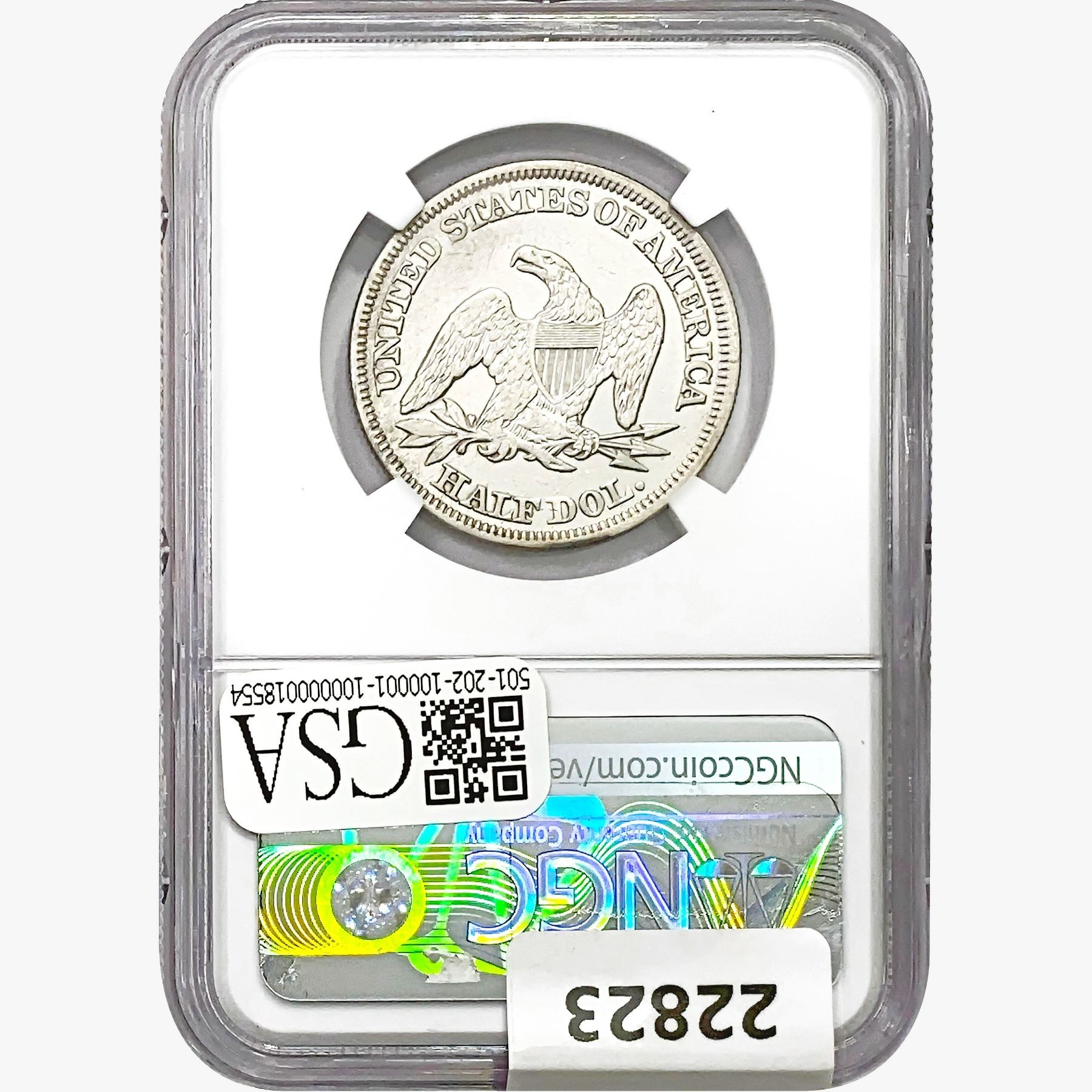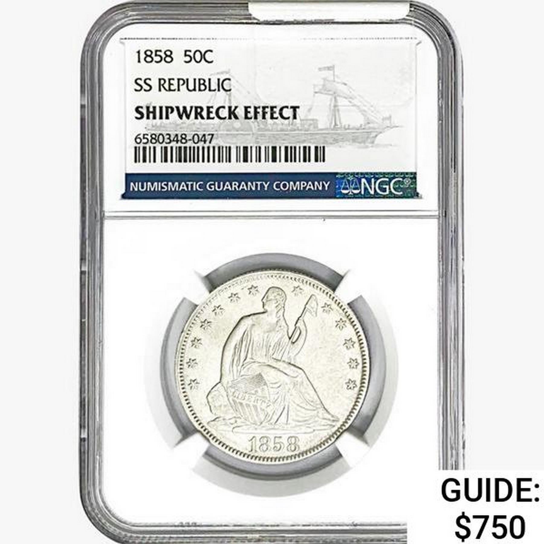 1858 Seated Lib. 50C NGC Shipwreck Effect SS REP.