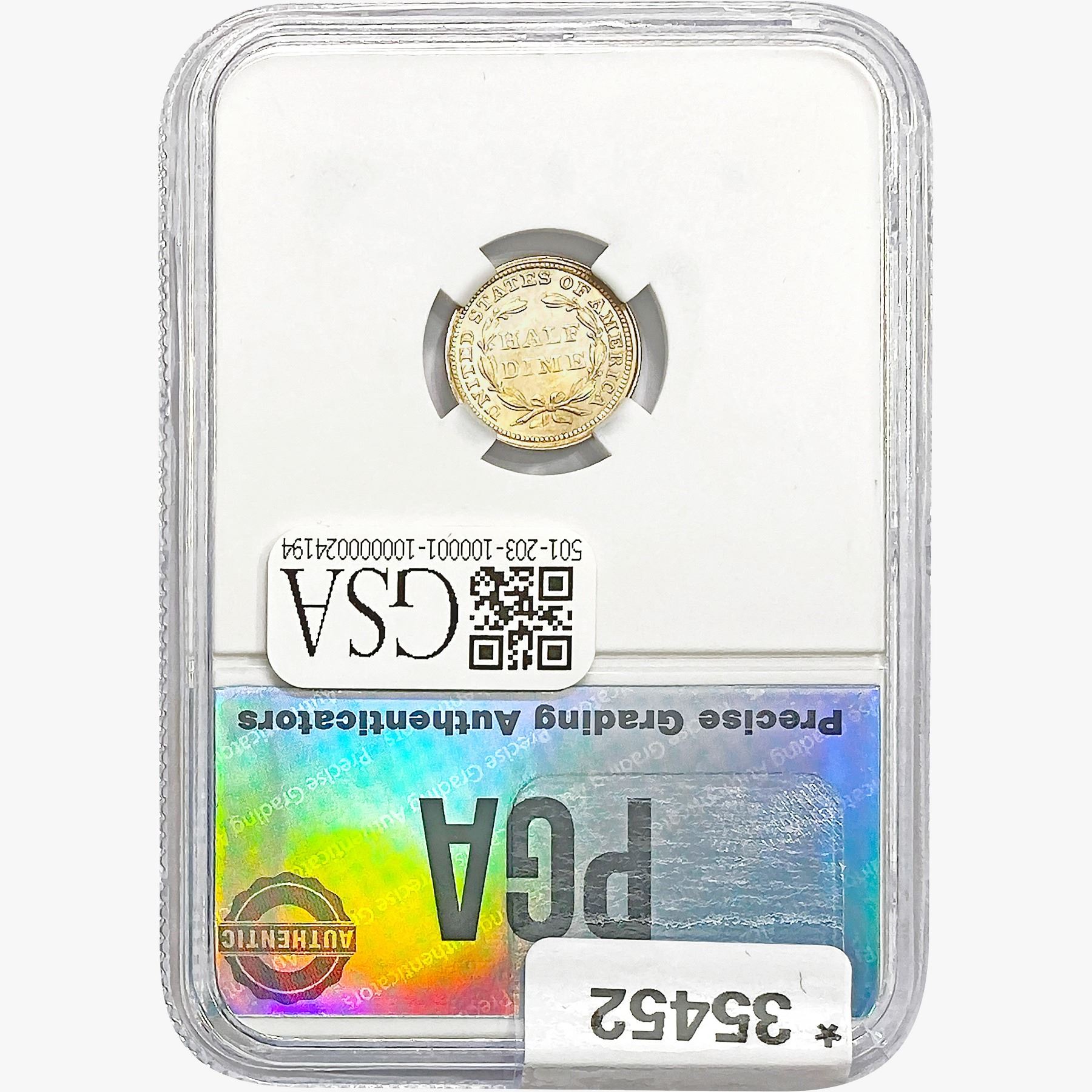 l. All non-certified coins and currency are guaranteed genuine, but are not guaranteed as to grade, since grading is a matter of opinion, an art and not a science, and therefore the description rendered by GSA or any third-party grading service may not agree with the opinion of others (including trained experts), and the same expert may not grade the same item with the same grade at two different times. GSA may, but is not obligated to, express an opinion as to non-certified numismatic items, in GSA’s opinion, or by its employees’ experience and the current interpretation of the American Numismatic Association’s standards as of the date the catalog was prepared. There is no guarantee or warranty expressed or implied that the grading opinions utilized by GSA, if any, will meet the standards of any grading service at any time in the future.