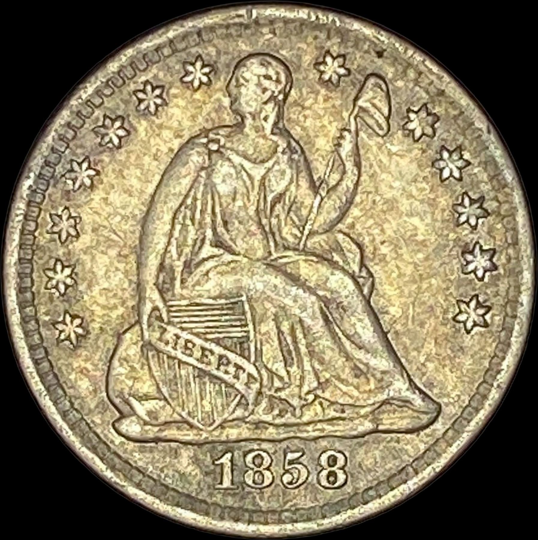 1858 Seated Liberty Half Dime NEARLY UNCIRCULATED