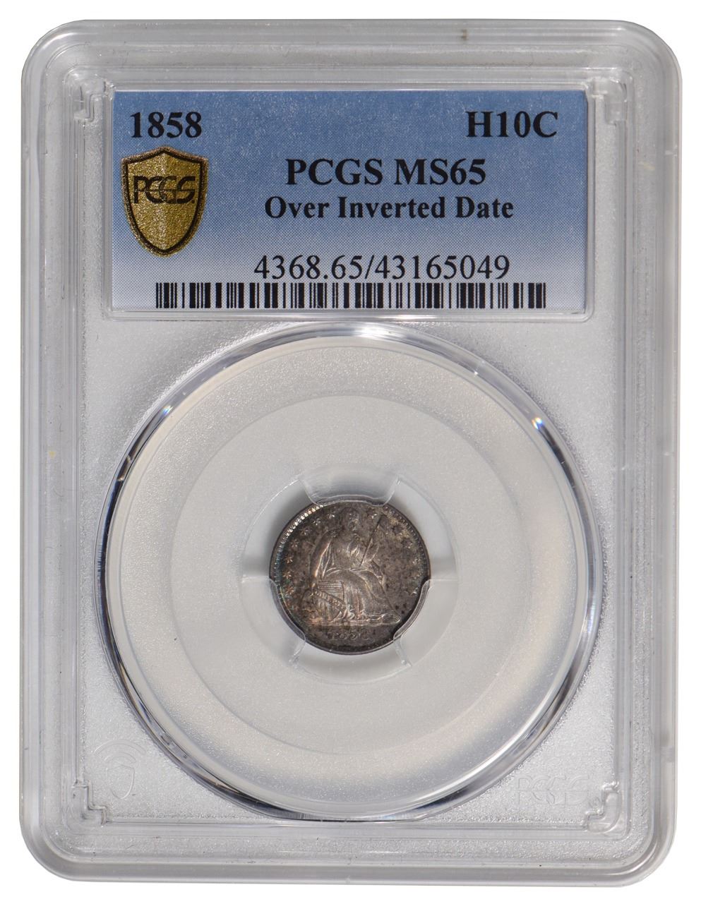 One 1858 Seated Liberty Half Dime PCGS MS65.