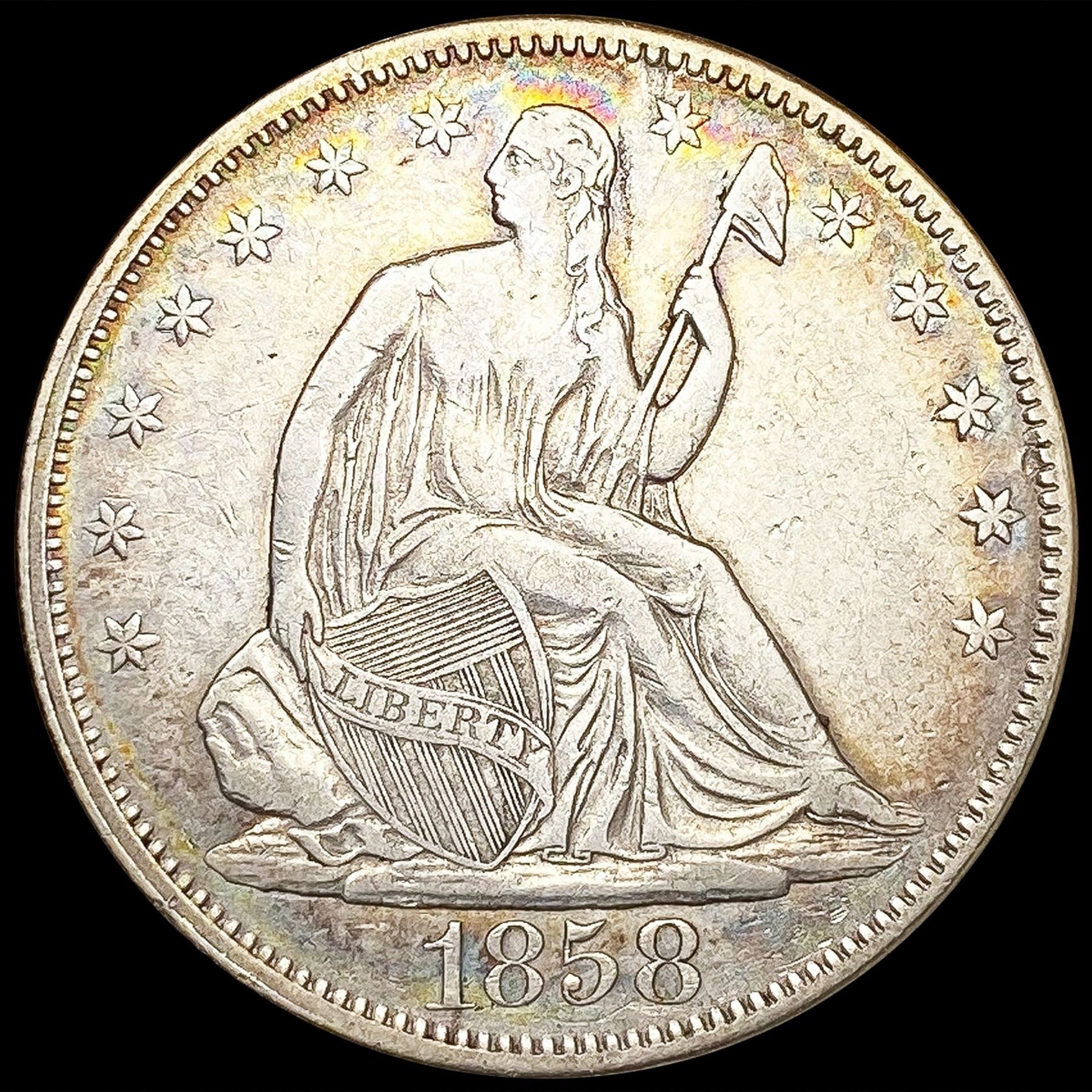 1858 Seated Liberty Half Dollar CLOSELY UNCIRCULAT