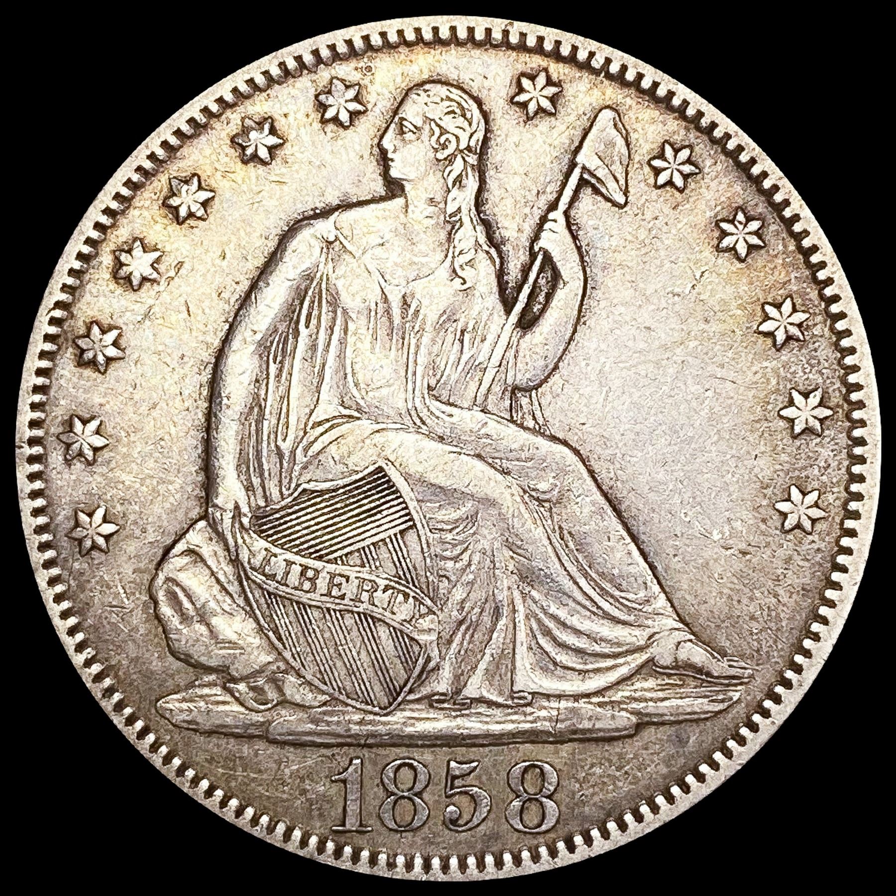 1858 Seated Liberty Half Dollar CLOSELY UNCIRCULAT