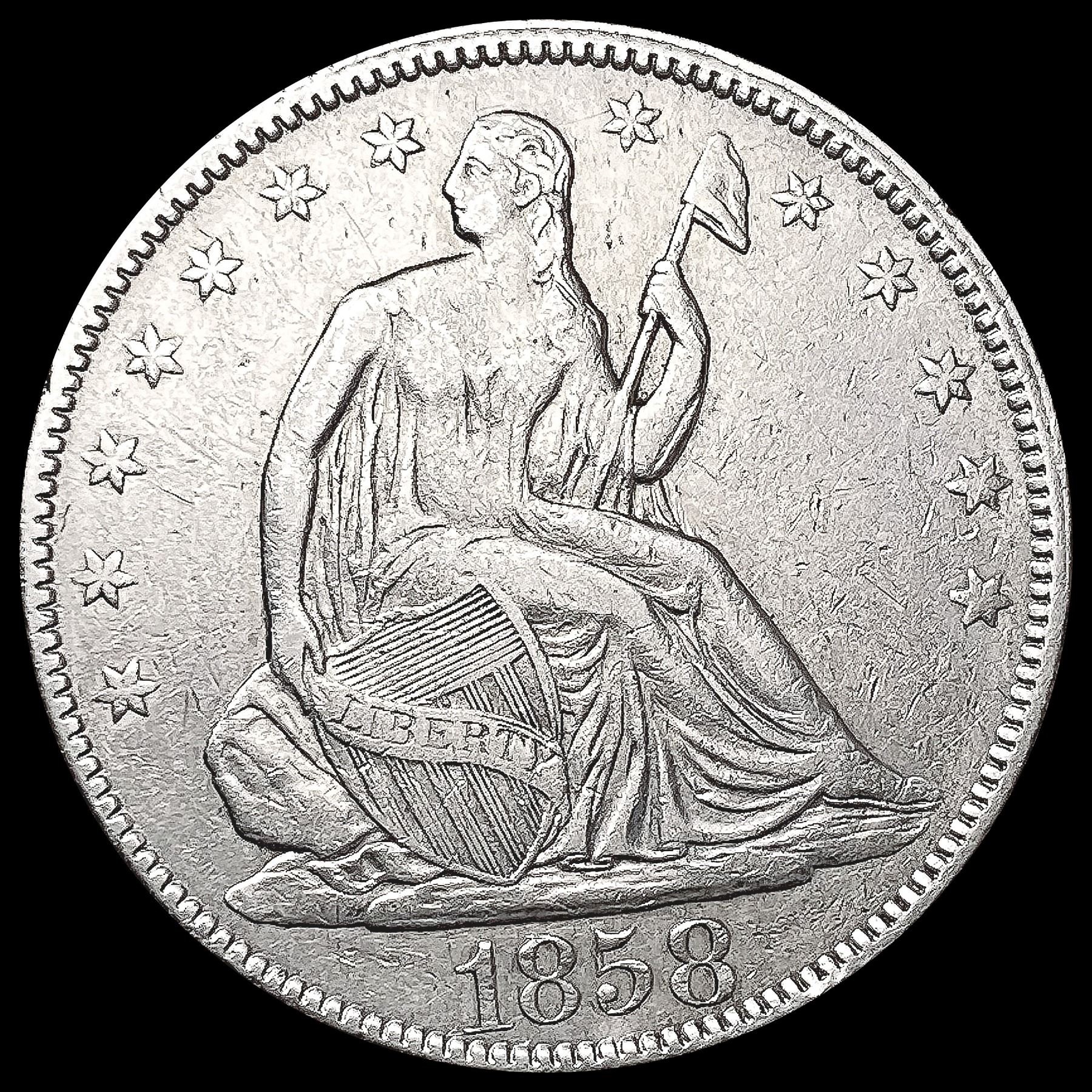 1858 Seated Liberty Half Dollar CLOSELY UNCIRCULAT