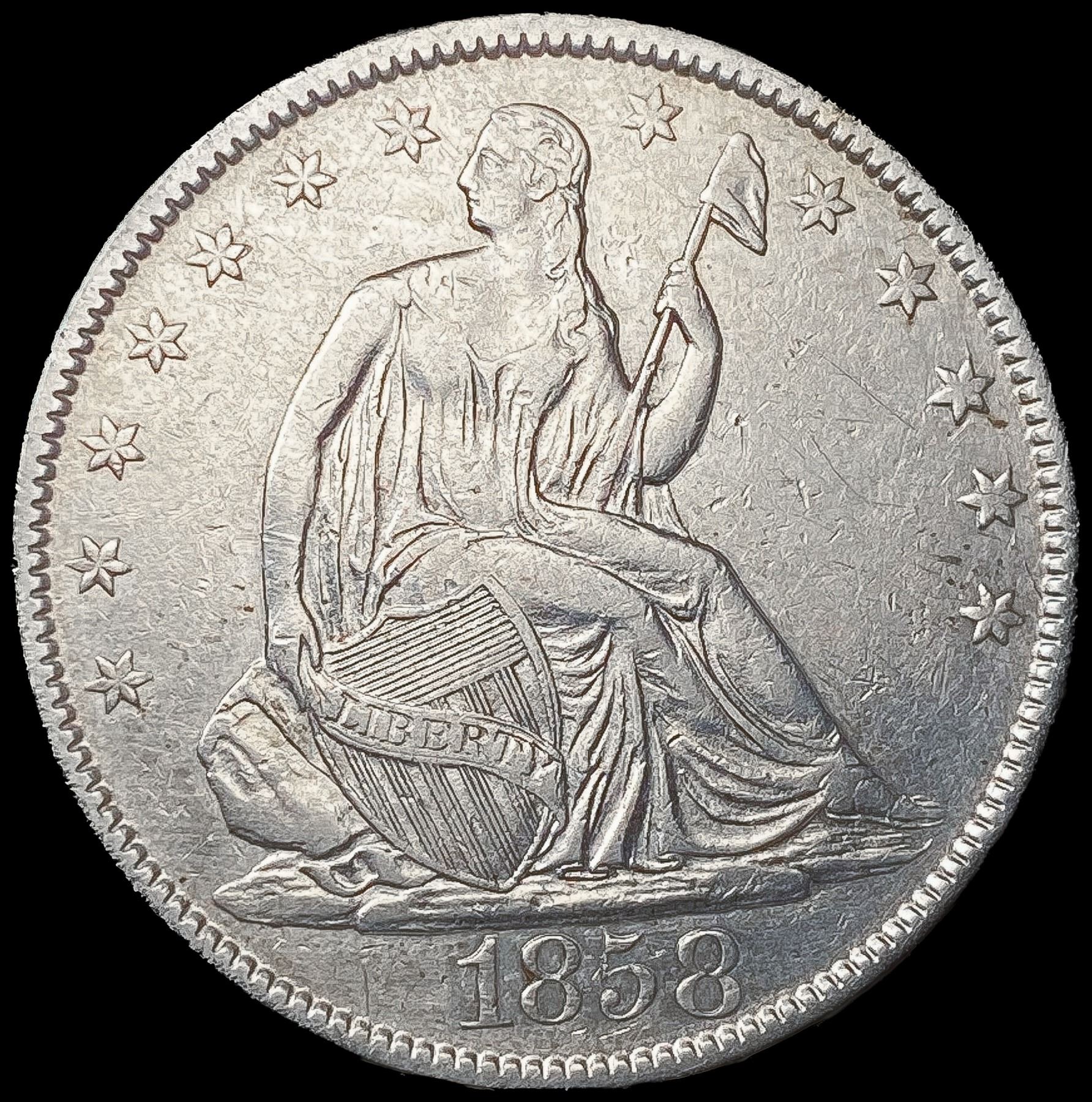 1858 Seated Liberty Half Dollar CLOSELY UNCIRCULAT