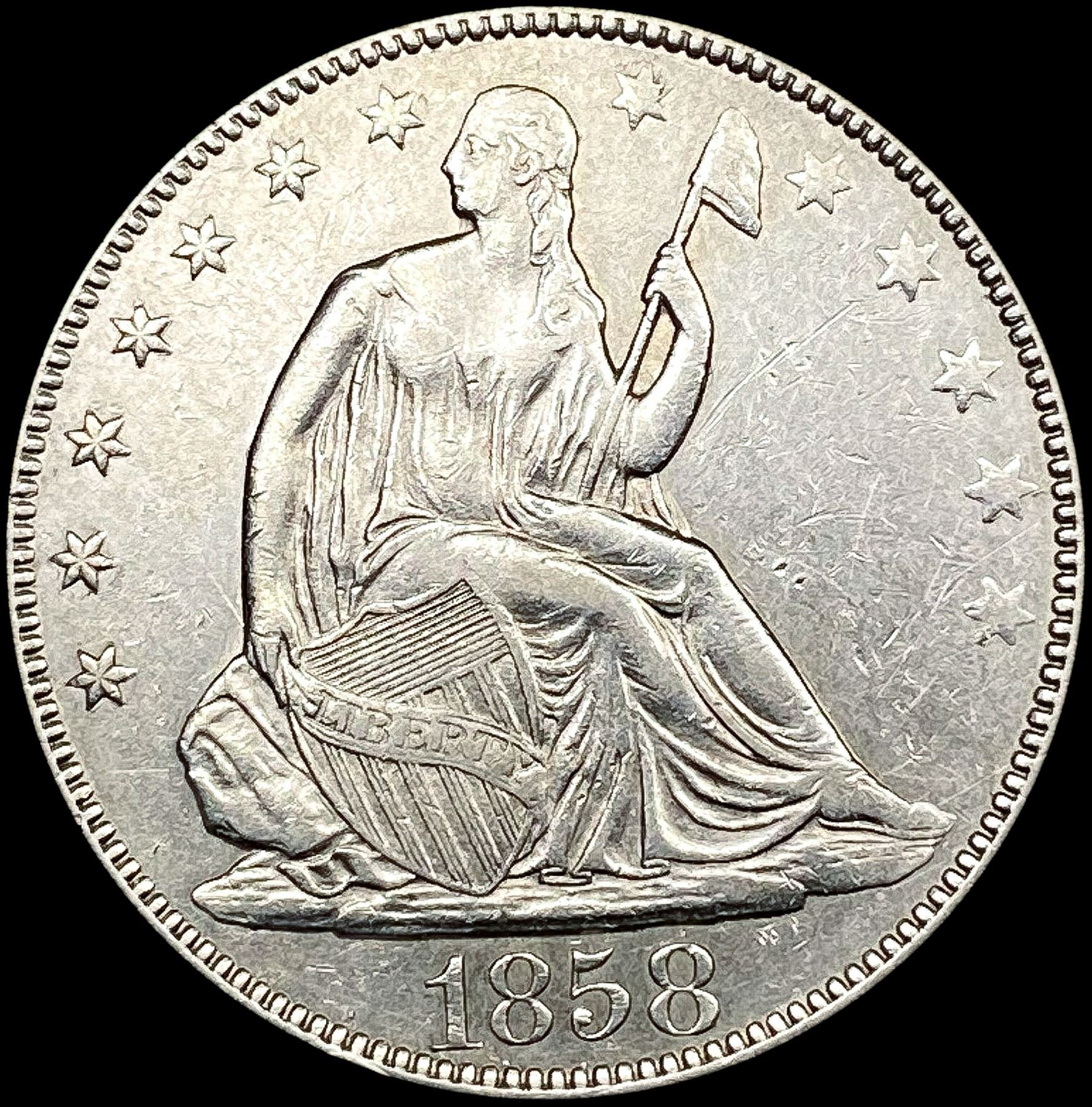 1858 Seated Liberty Half Dollar CLOSELY UNCIRCULAT