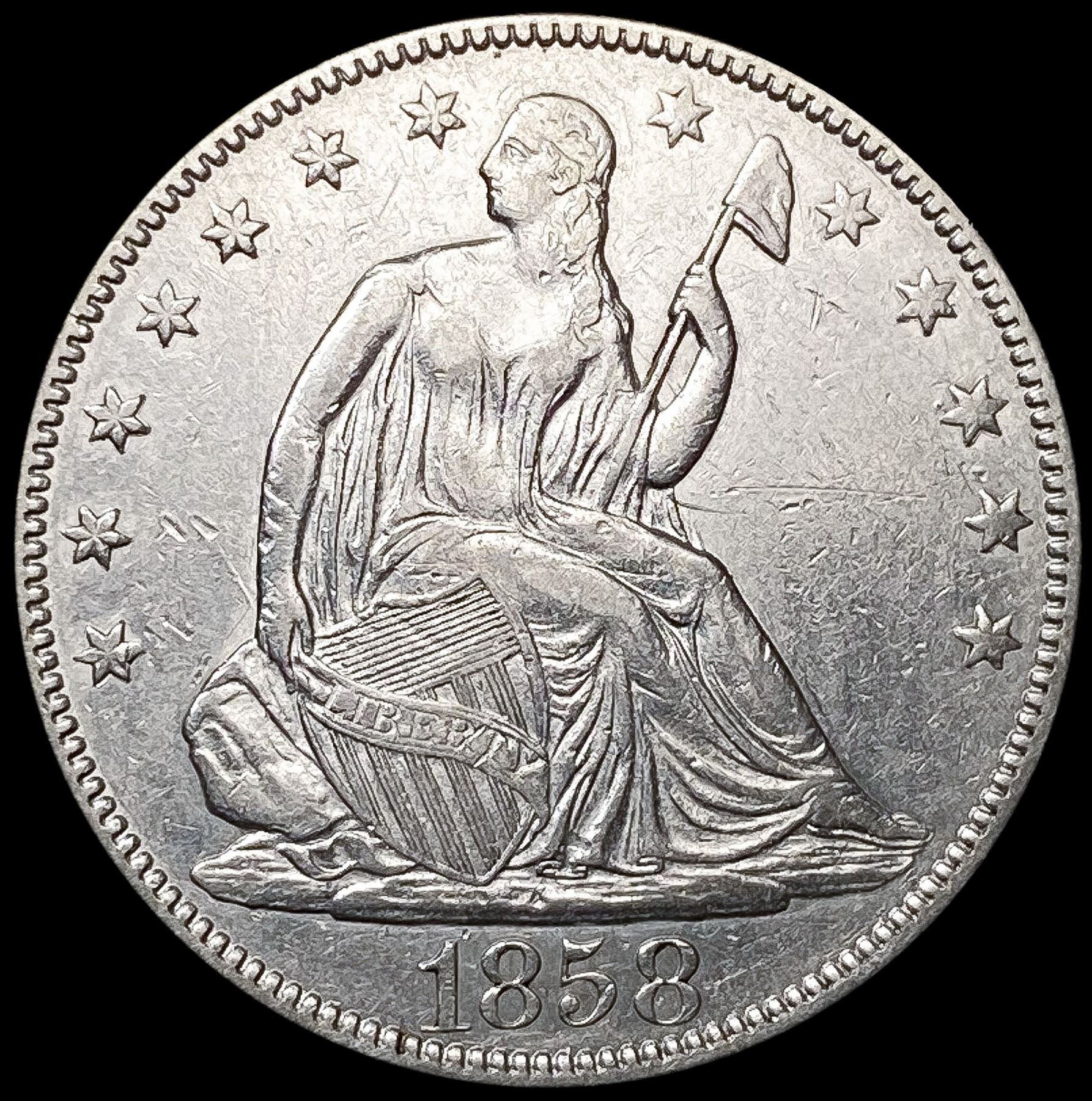 1858 Seated Liberty Half Dollar CLOSELY UNCIRCULAT