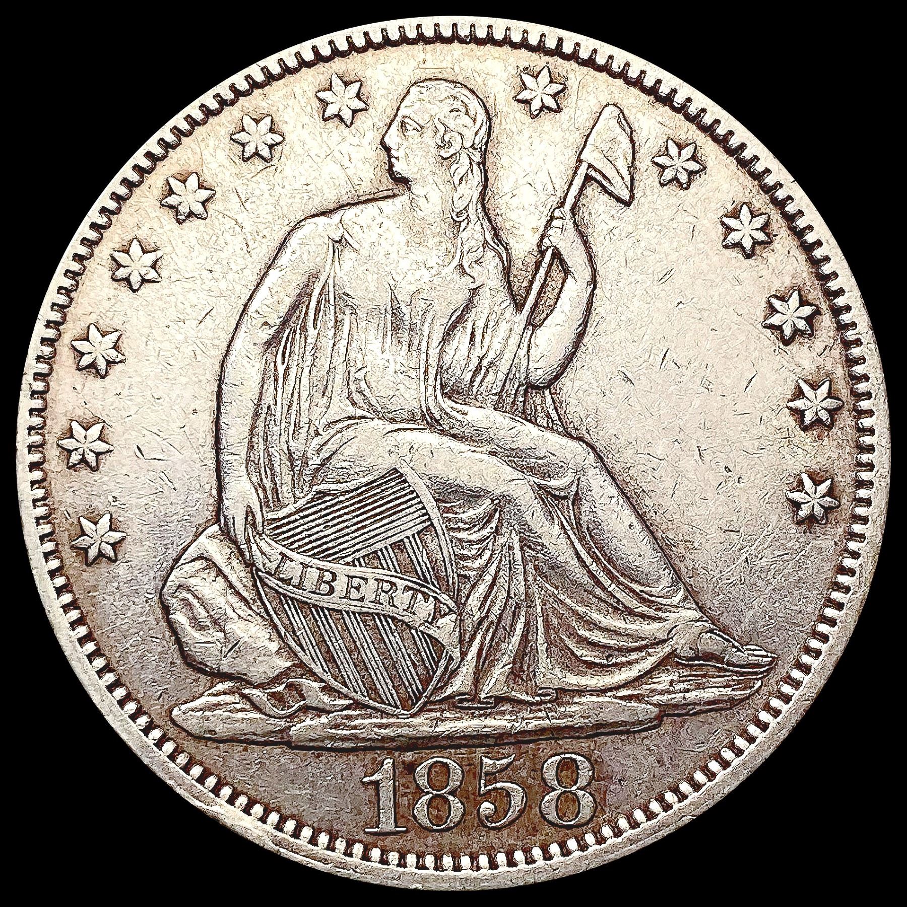 1858 Seated Liberty Half Dollar CLOSELY UNCIRCULAT