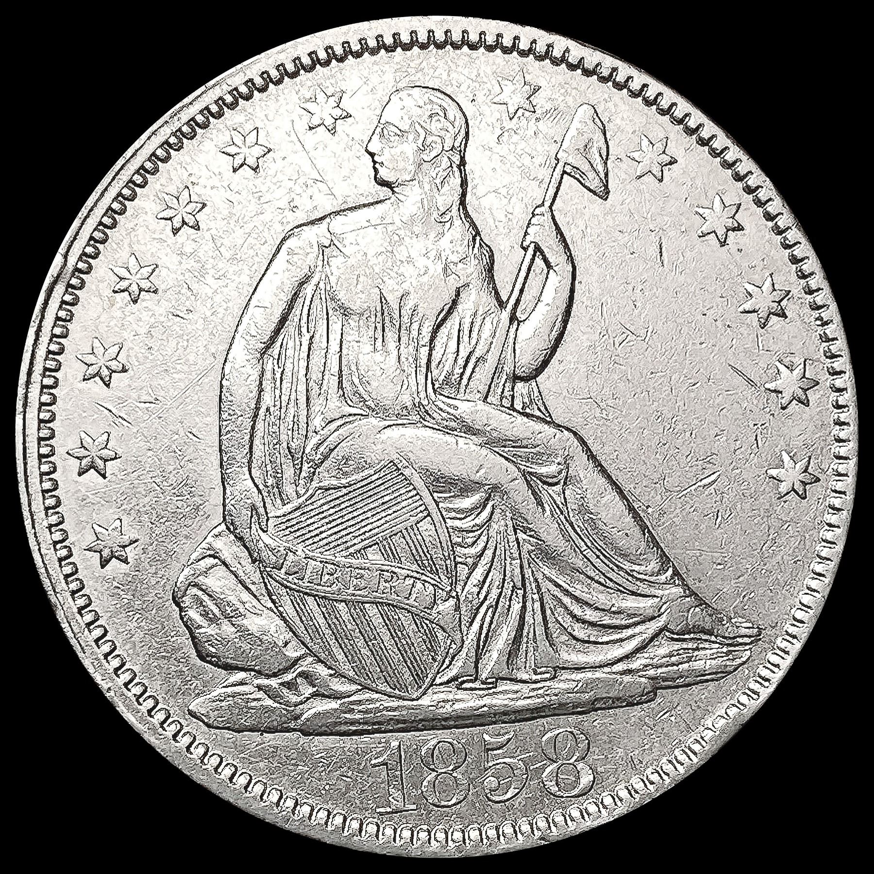 1858 Seated Liberty Half Dollar CLOSELY UNCIRCULAT