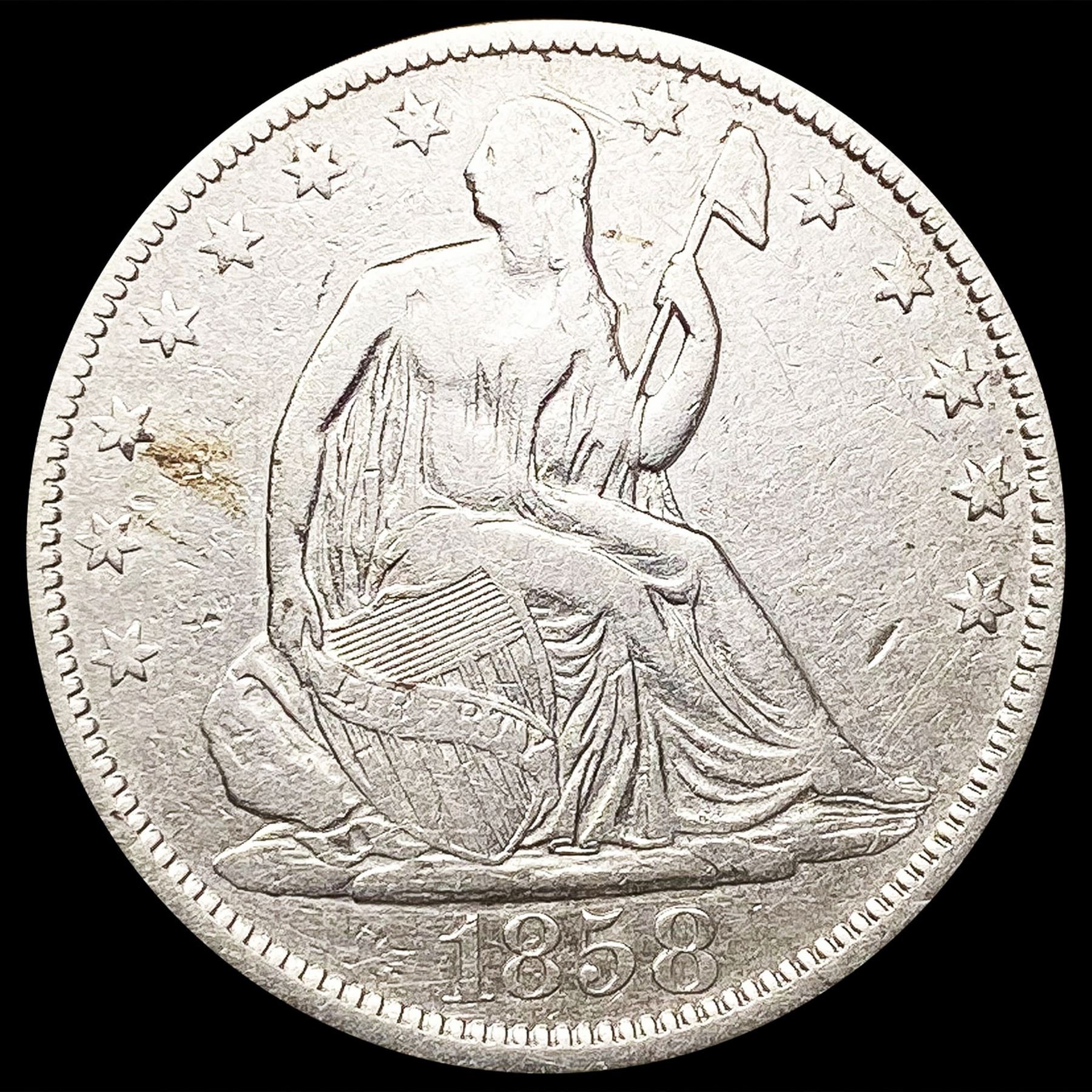 1858 Seated Liberty Half Dollar LIGHTLY CIRCULATED
