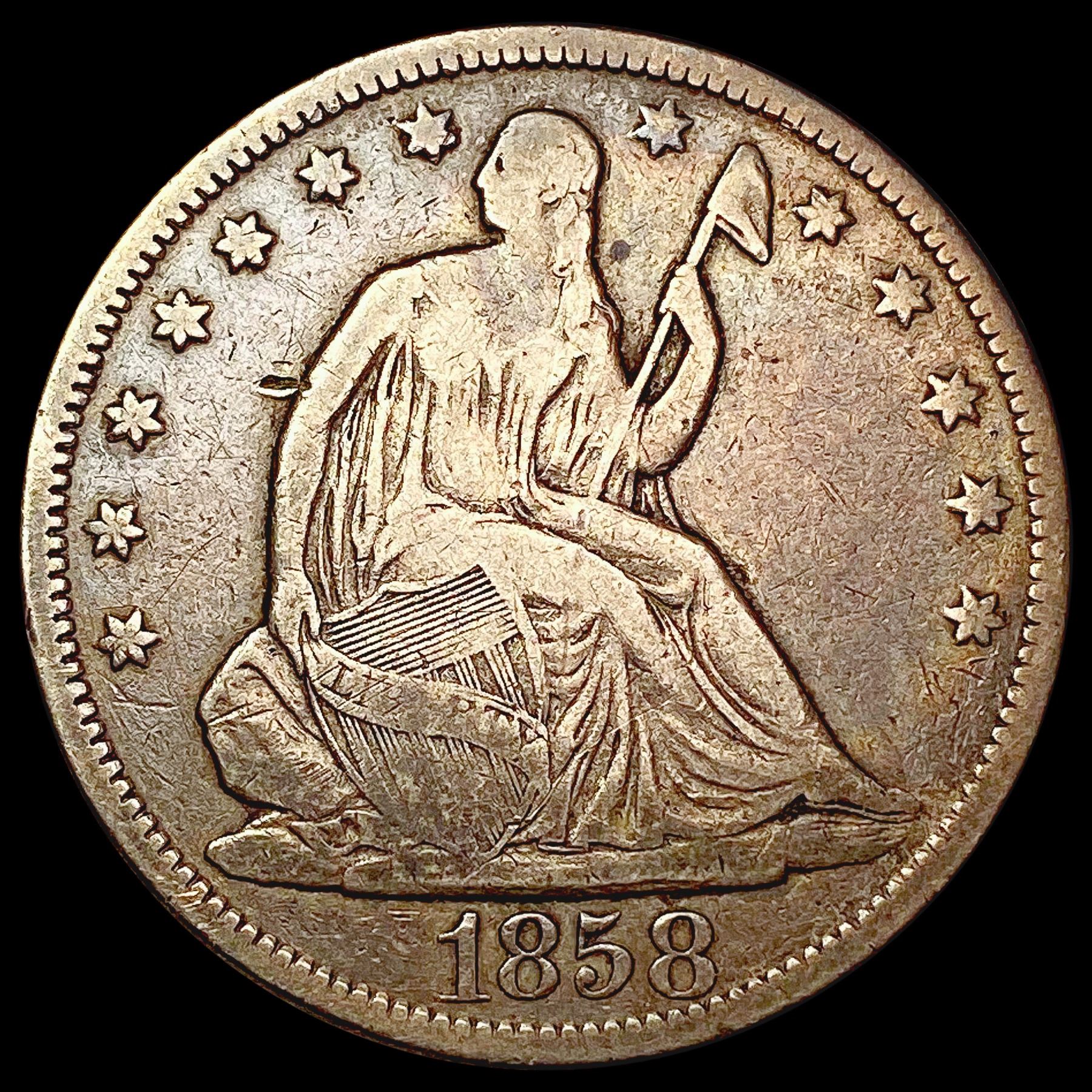 1858 Seated Liberty Half Dollar NICELY CIRCULATED