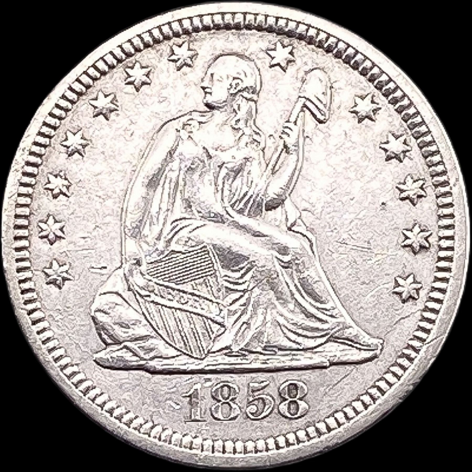 1858 Seated Liberty Quarter NEARLY UNCIRCULATED