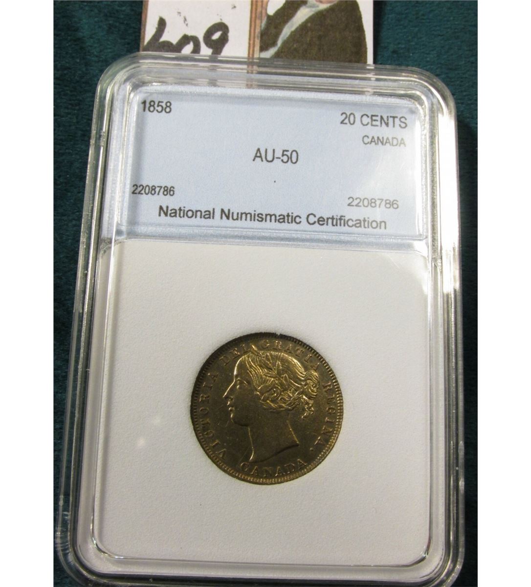 1858 Silver 20C Canada NNC AU50 #2208786 1Year Type