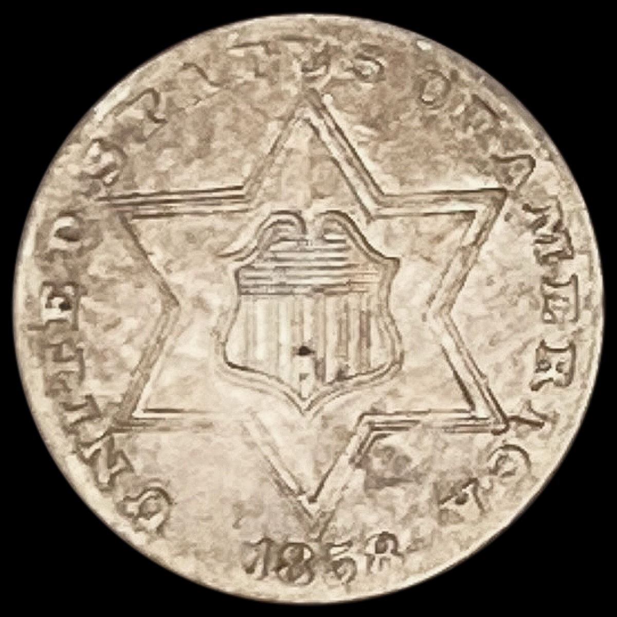 1858 Silver Three Cent AU UNCIRCULATED UNCIRCULATED