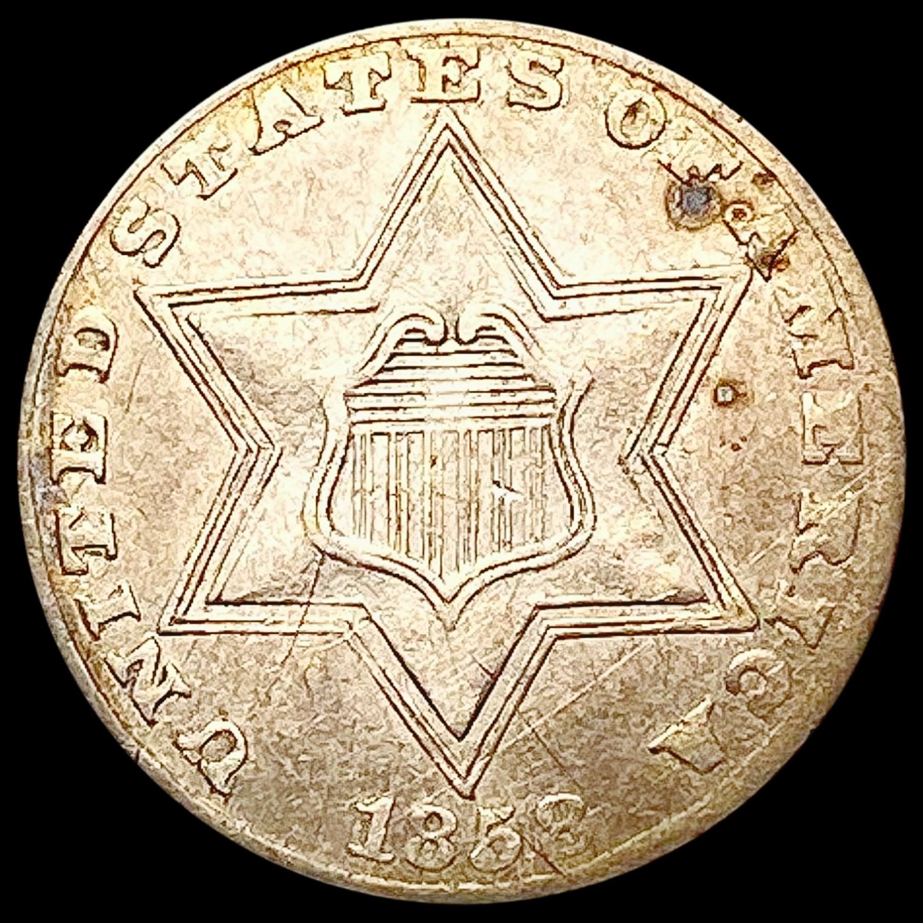 1858 Silver Three Cent CHOICE AU