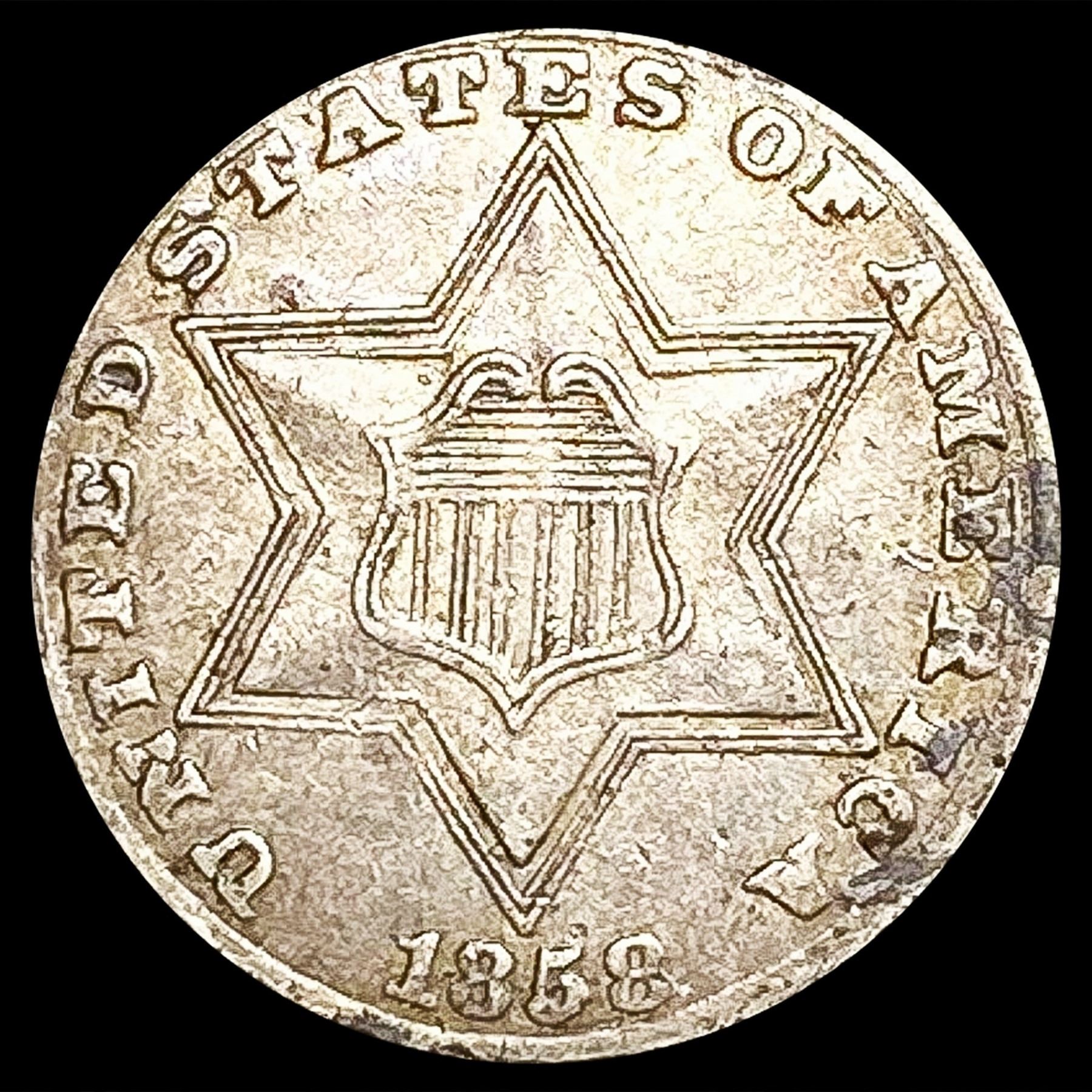 1858 Silver Three Cent CLOSELY UNCIRCULATED