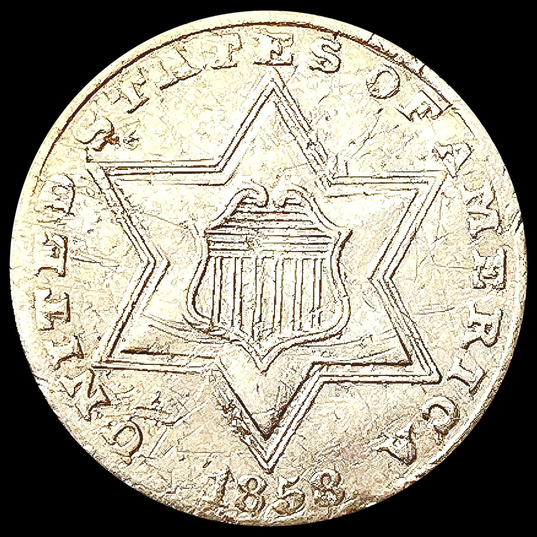 1858 Silver Three Cent CLOSELY UNCIRCULATED