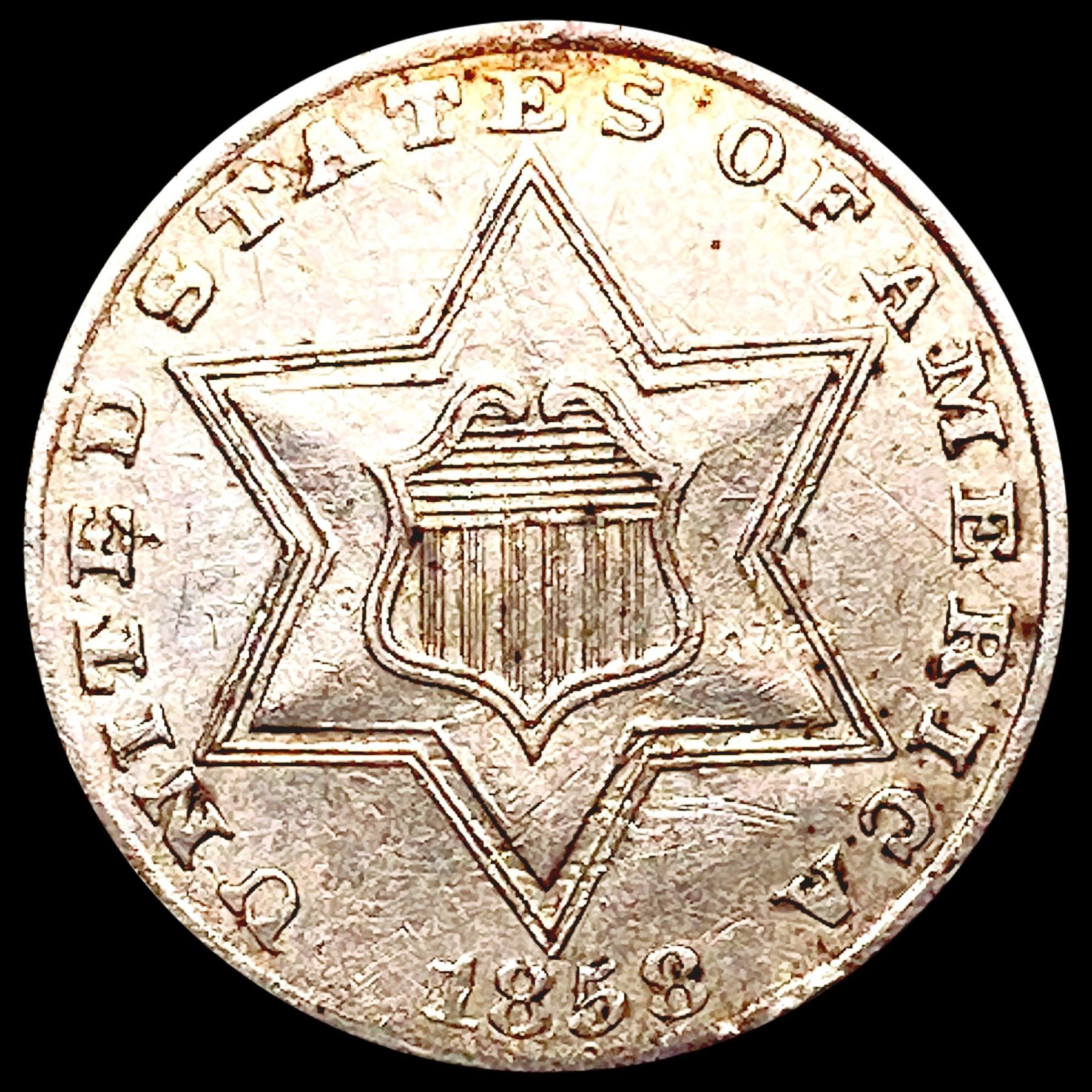 1858 Silver Three Cent NEARLY UNCIRCULATED