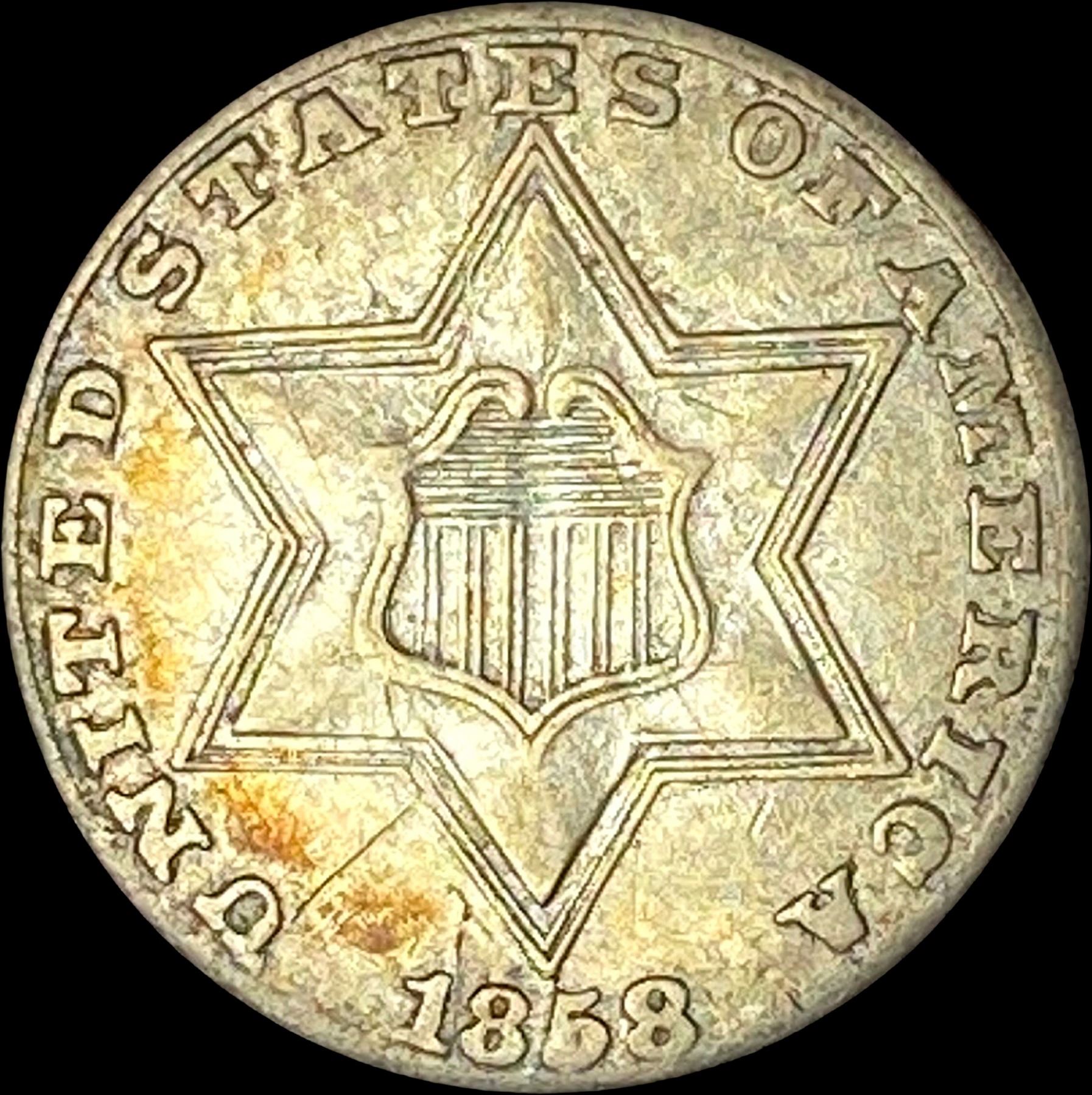 1858 Silver Three-Cent Piece CLOSELY UNCIRCULATED