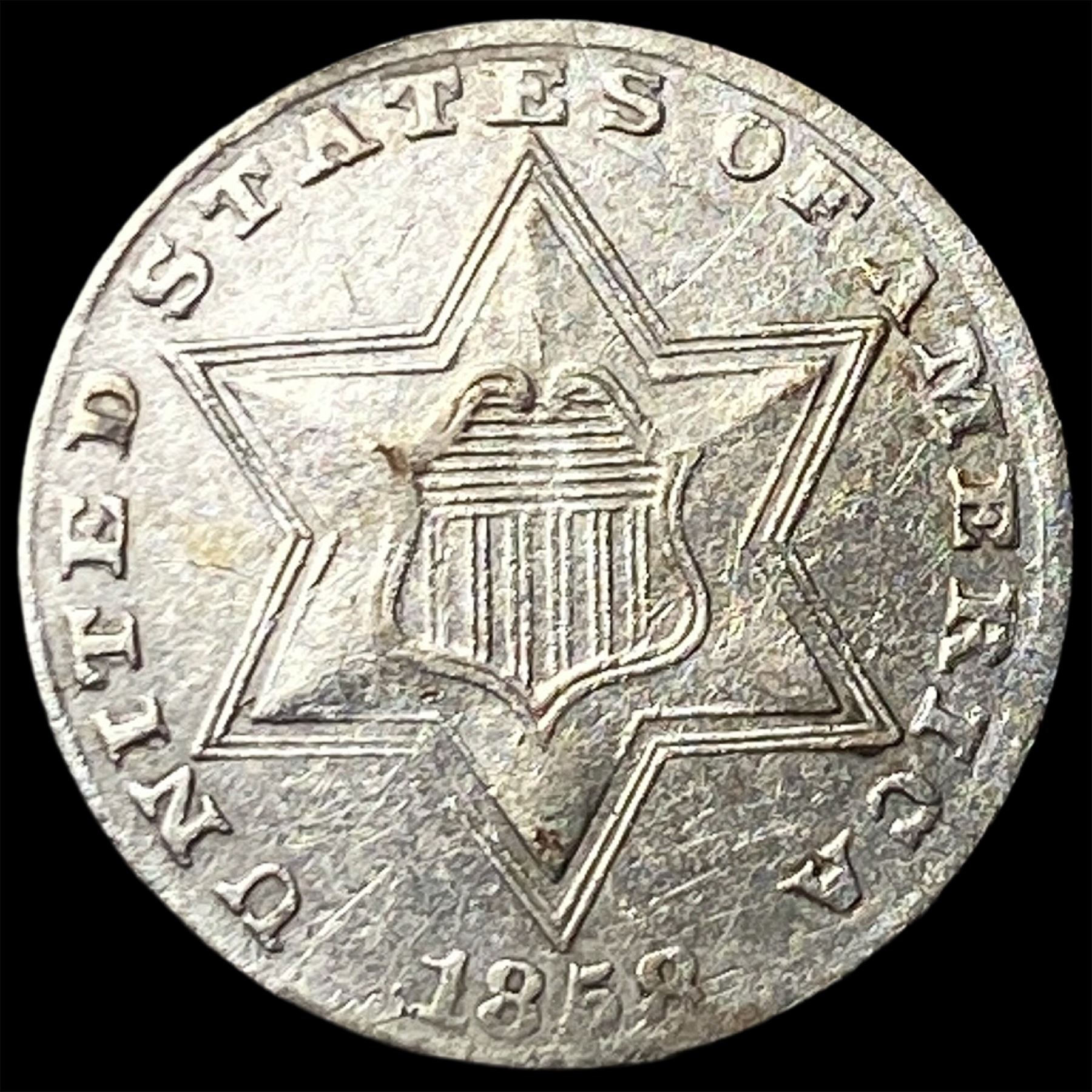 1858 Silver Three-Cent Piece CLOSELY UNCIRCULATED