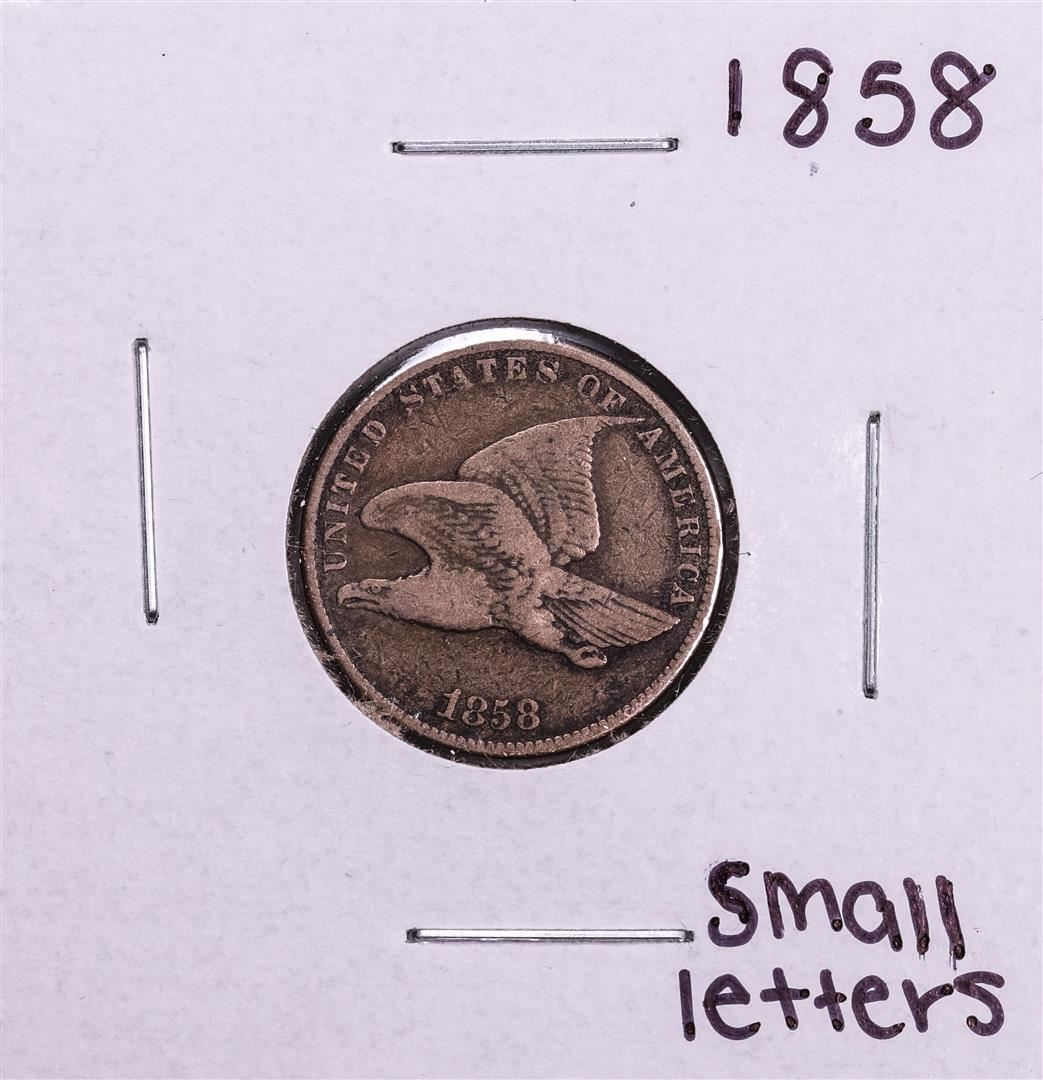 One 1858 Small Letters Flying Eagle Cent Coin.