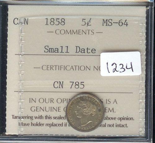1858 Small date ICCS MS64, Fully struck with amazing lustre. Attractively toned.. A very nice "Victorian"example in "choice" condition.