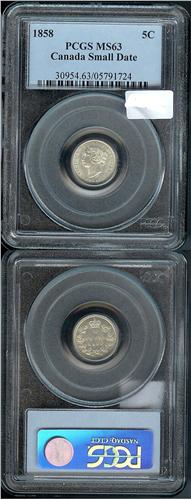 1858 Small date PCGS MS-63, Fully struck with amazing lustre. BRILLIANT. A very nice "Victorian"example in "choice" condition.
