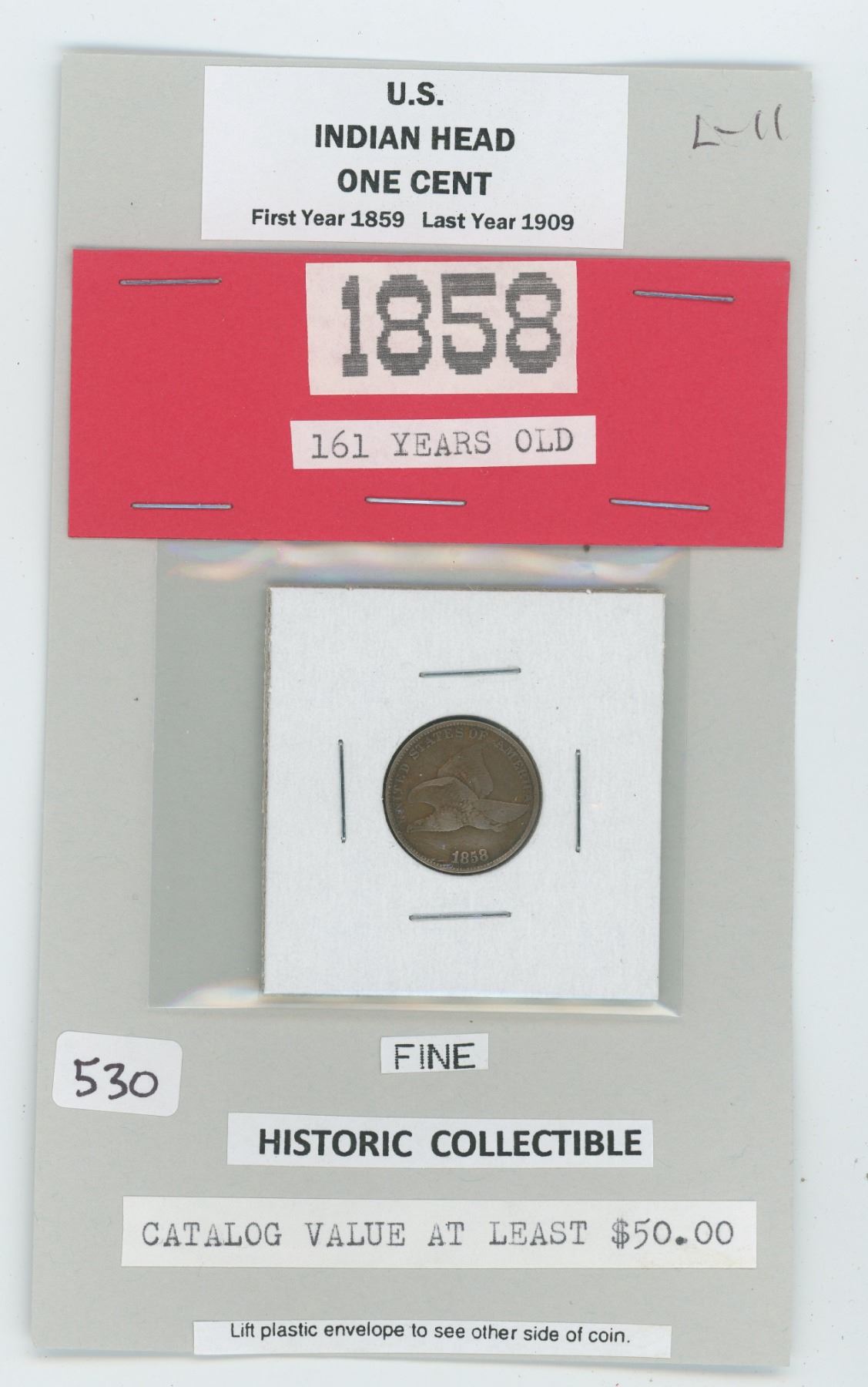 1858 U.S FLYING EAGLE ONE CENT- SCARCER DATE CATALOG VALUE $50.00