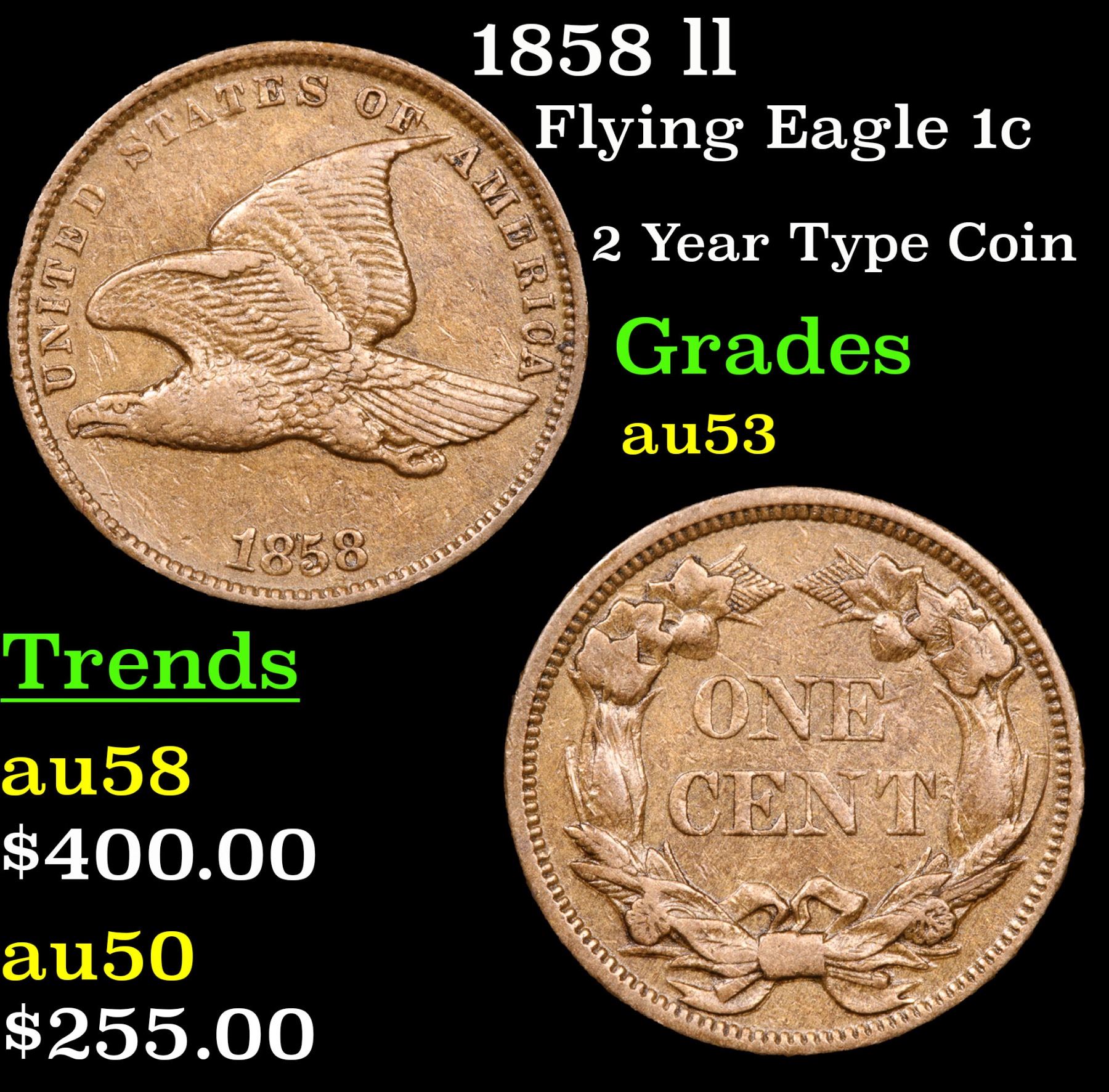 1858 ll 2 Year Type Coin . Flying Eagle Cent 1c Grades Select AU.