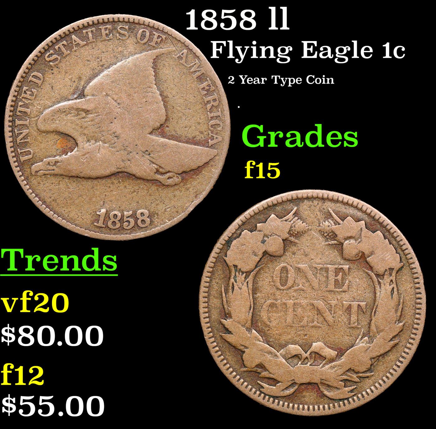 1858 ll Flying Eagle Cent 1c Grades f+.