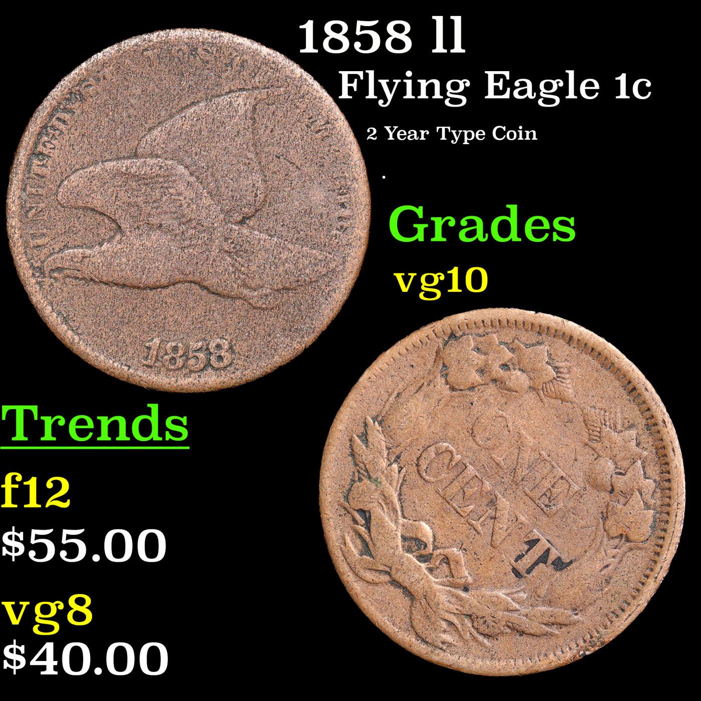 1858 ll Flying Eagle Cent 1c Grades vg+.
